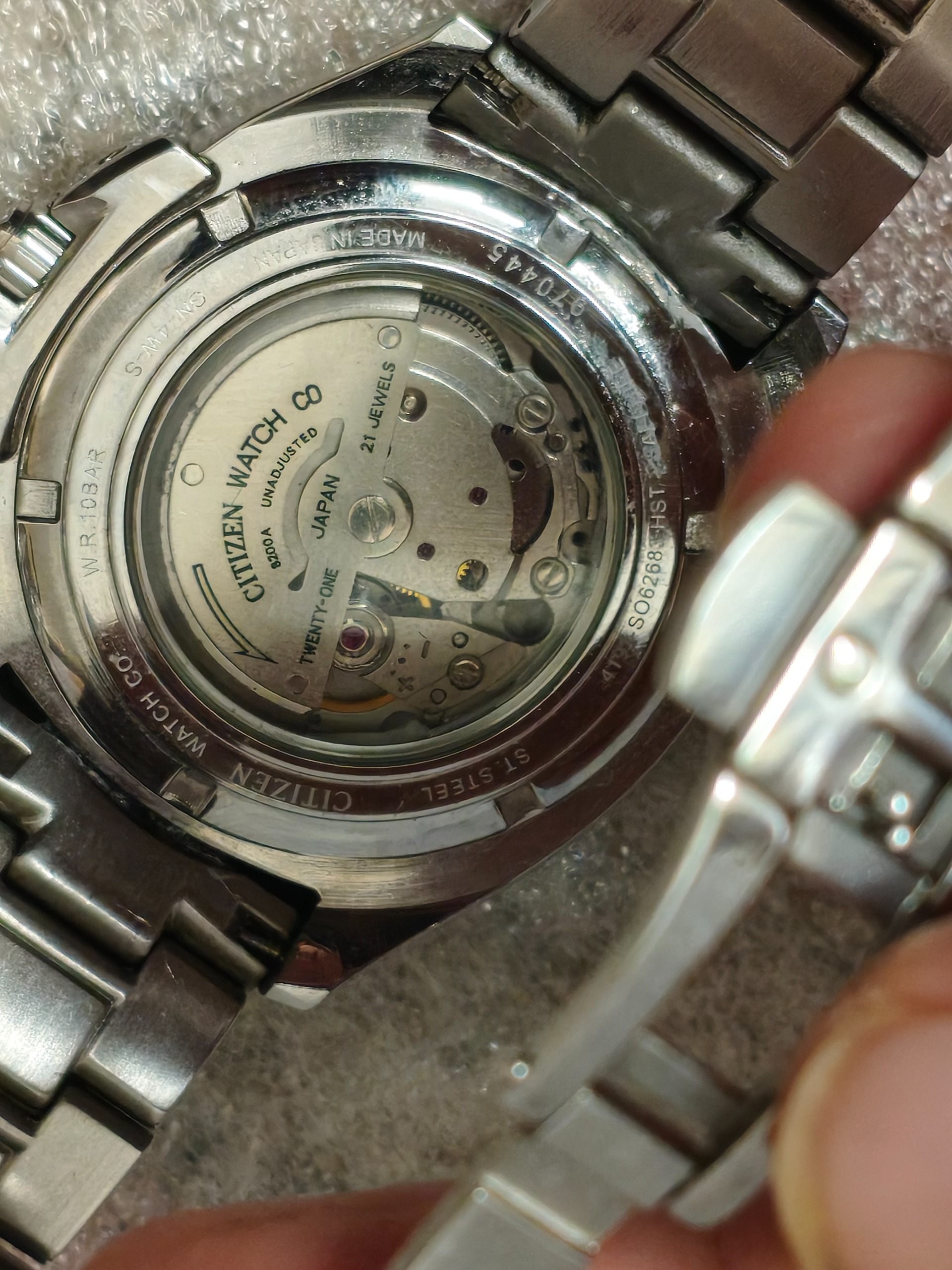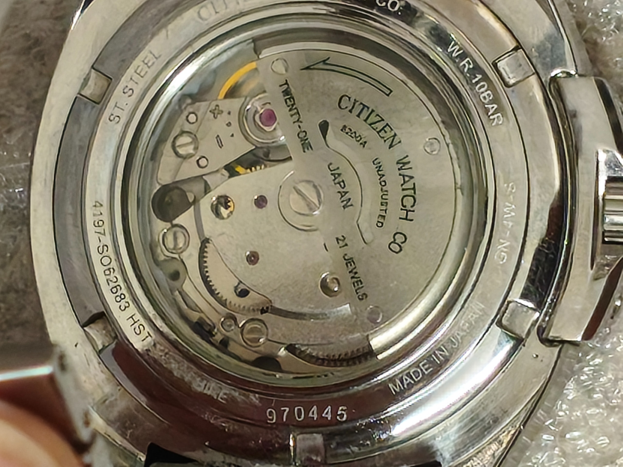 ساعت مردانهٔ تماماتوماتیک **CITIZEN WATCH CO.** مدل **4R197 / 8200A** با موتور مکانیکی 21 سنگ (21 Jewels) ساخت کشور **Japan**  نمونهای تماماورجینال، نو و کمیاب برای کلکسیونرها و دوستداران برند سیتیزن.