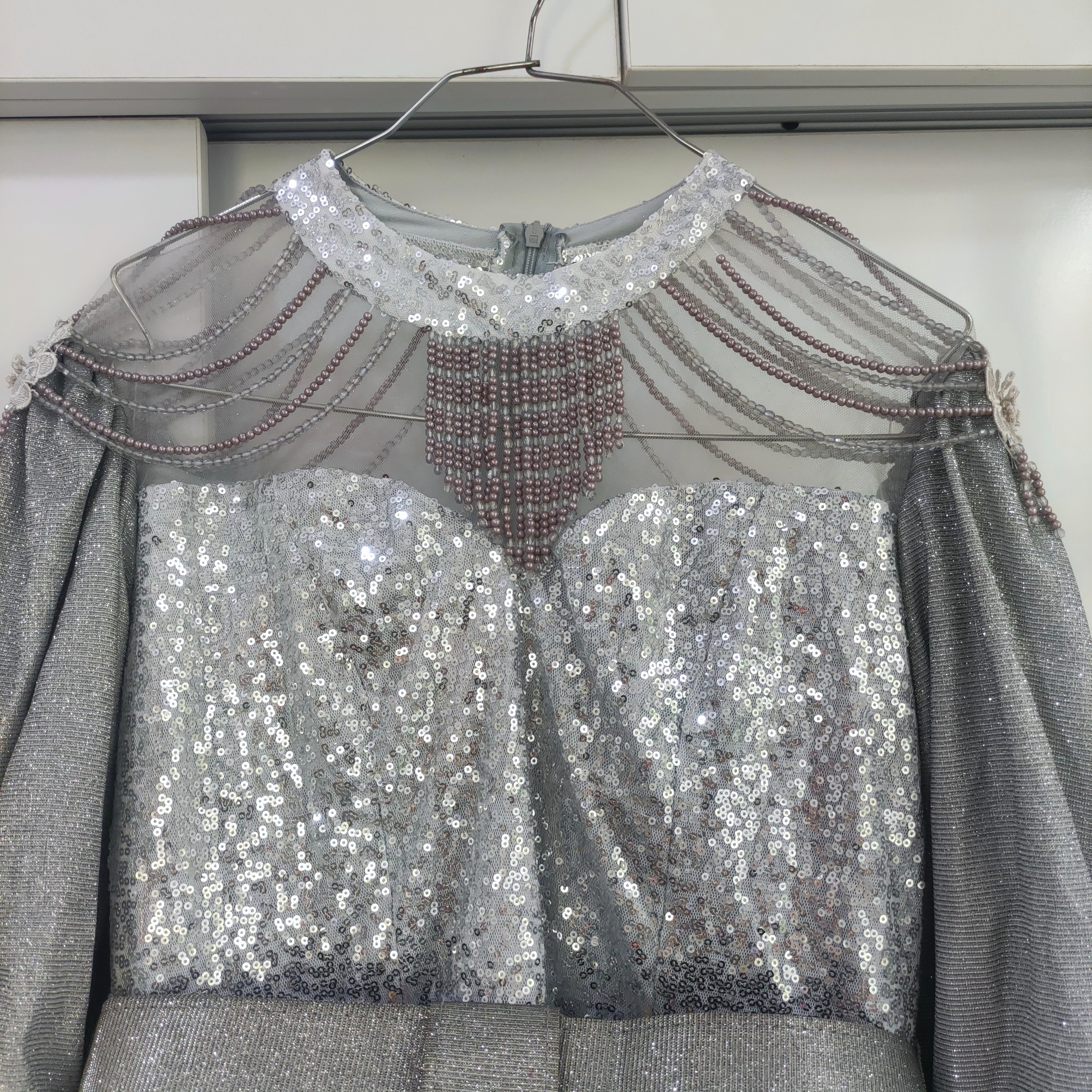 پیراهن مجلسی زنانه نقره ای اکلیلی