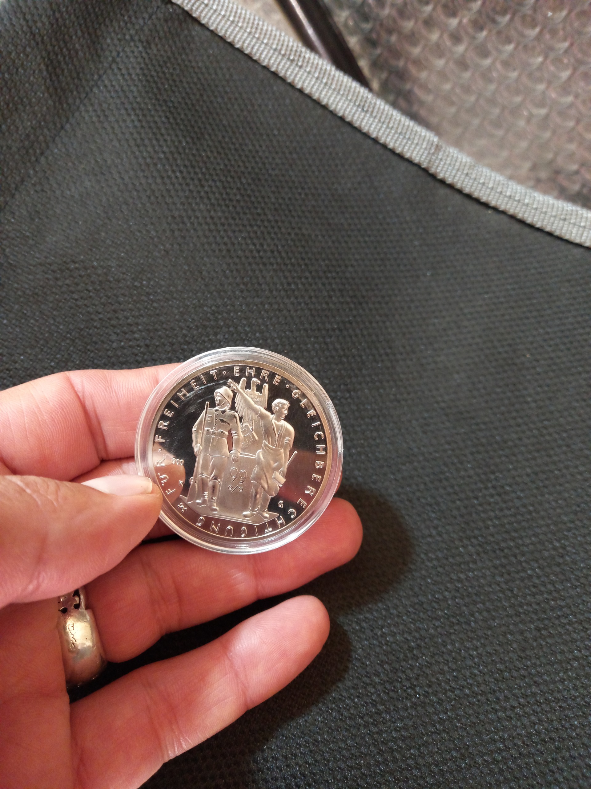 سکه کلکسیونی آلمان باطراحی بینظیر ودرجه1 جنس استیل ابکاری نقره ای به همراه قاب محافظ