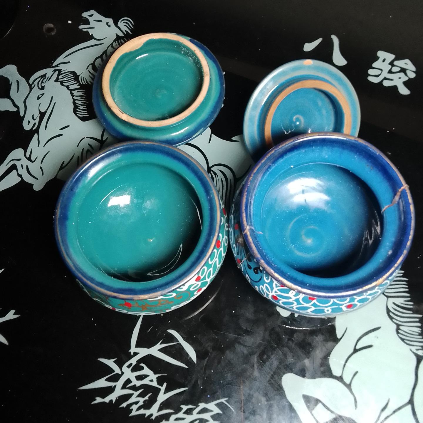 مزایده دو عدد قندان لعابدار سفالی از صنایع دستی زیبا به سبک و نقوش قدیمی زیبا قند تو دلتون آب می شه. مناسب برای آشپزخونه چای خوری، کافه،قهوه خونه ،آلاچیق و رستوران های سنتی....