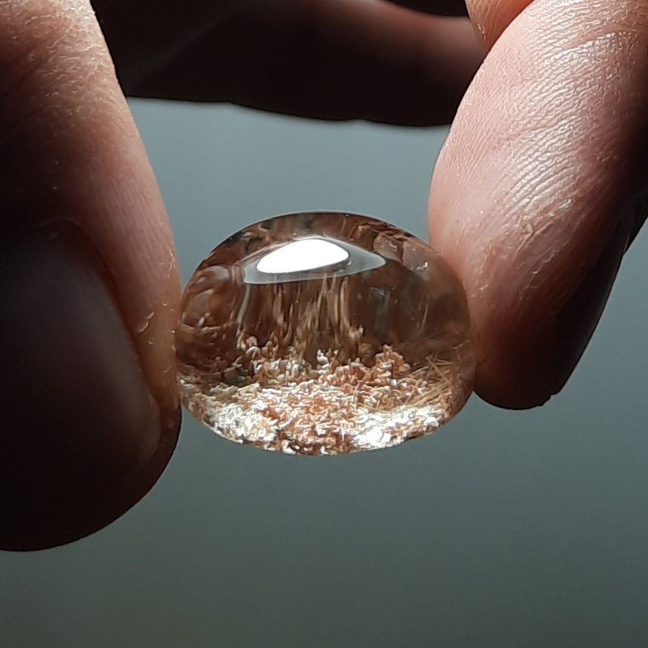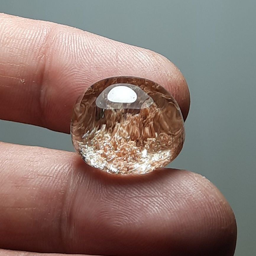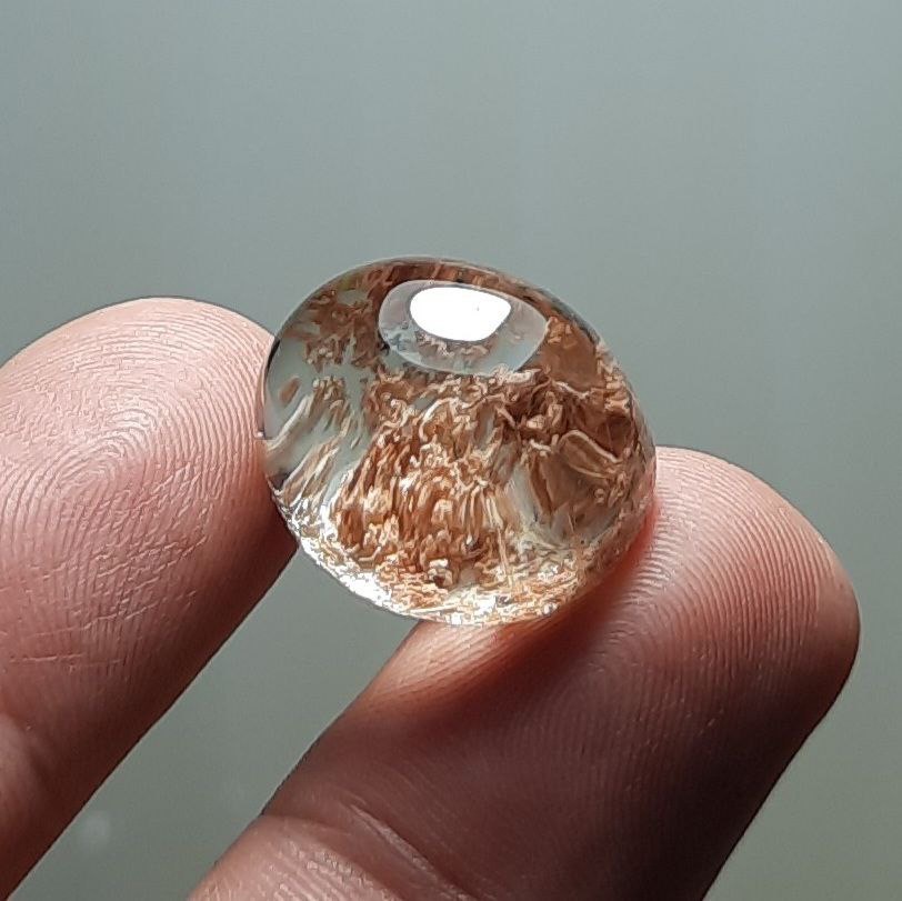 کوارتز فانتوم ( در خزه ای ) خوشرنگ خوش نقش شفاف اصل معدنی با رنگ طبیعی بدون بهسازی ، منظره آکواریومی طبیعی ، تراش دامله دقیق