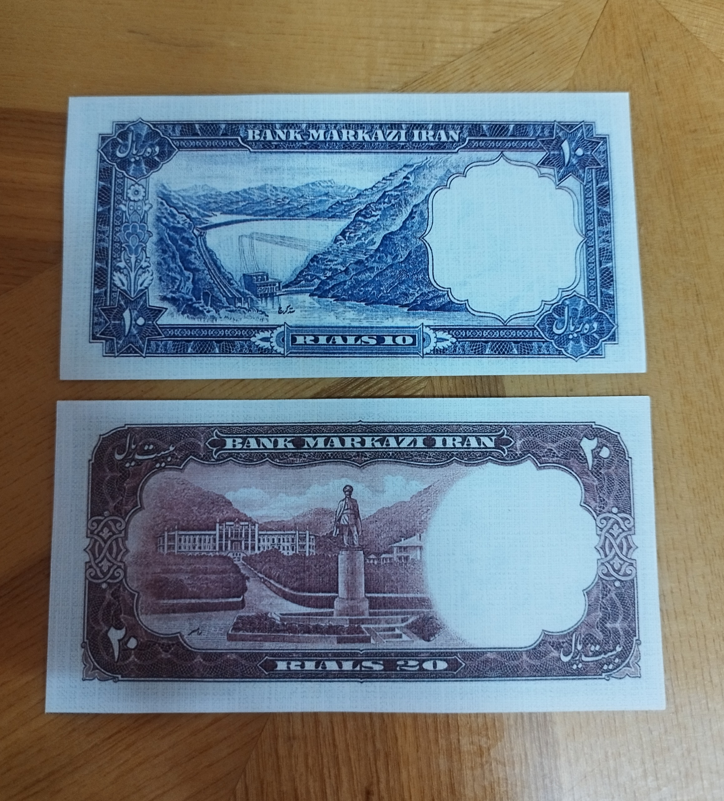 اسکناس های کامل از سری اول بانک مرکزی محمد رضا پهلوی 1340