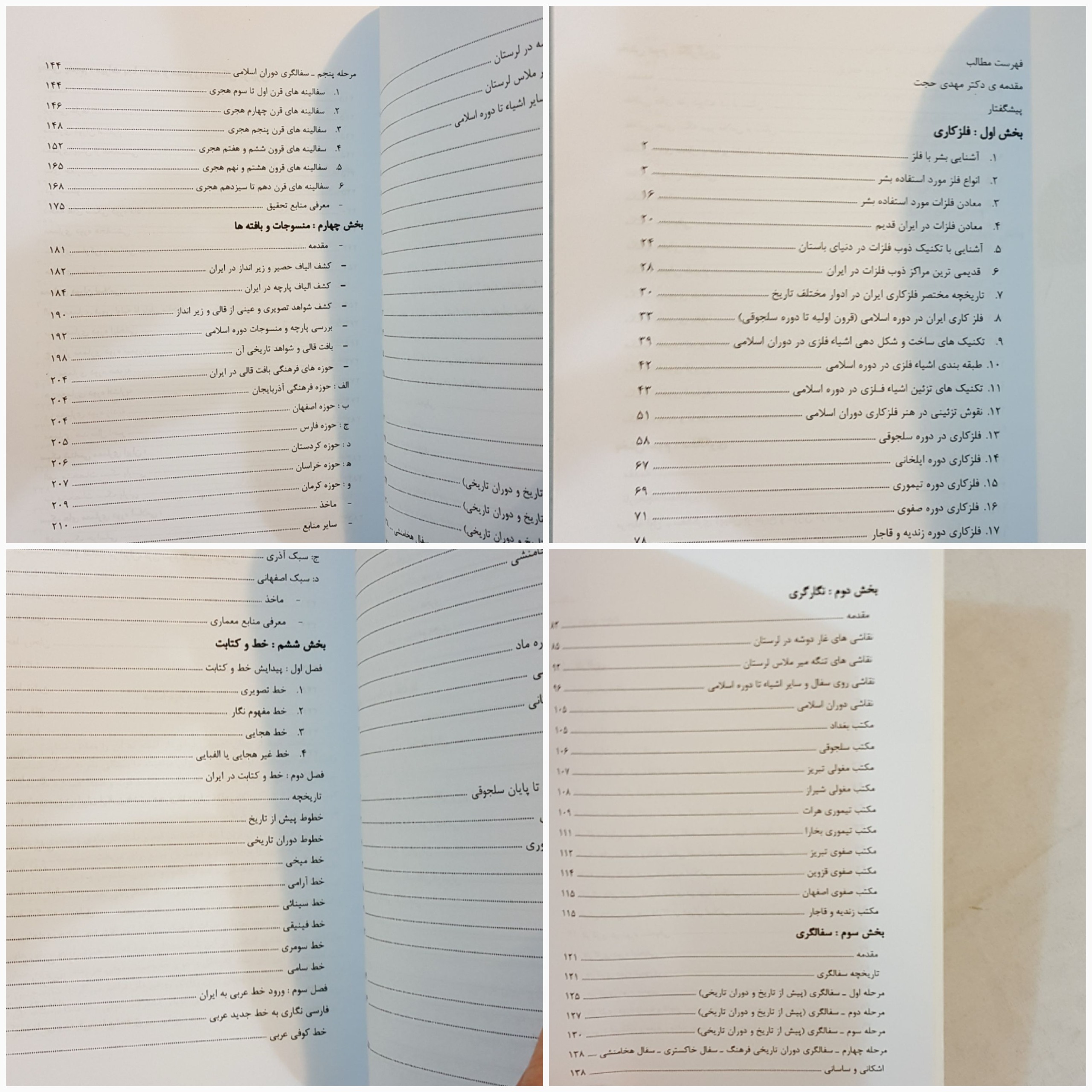 مبانی هنرهای فلز کاری نگارگری سفالگری بافته ها و منسوجات معماری خط و کتابت