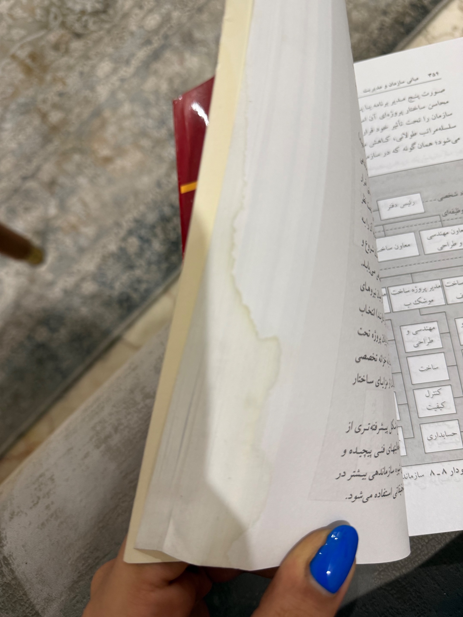 کتاب آب خورده می باشد ولی جلد آن قدری آسیب دیده