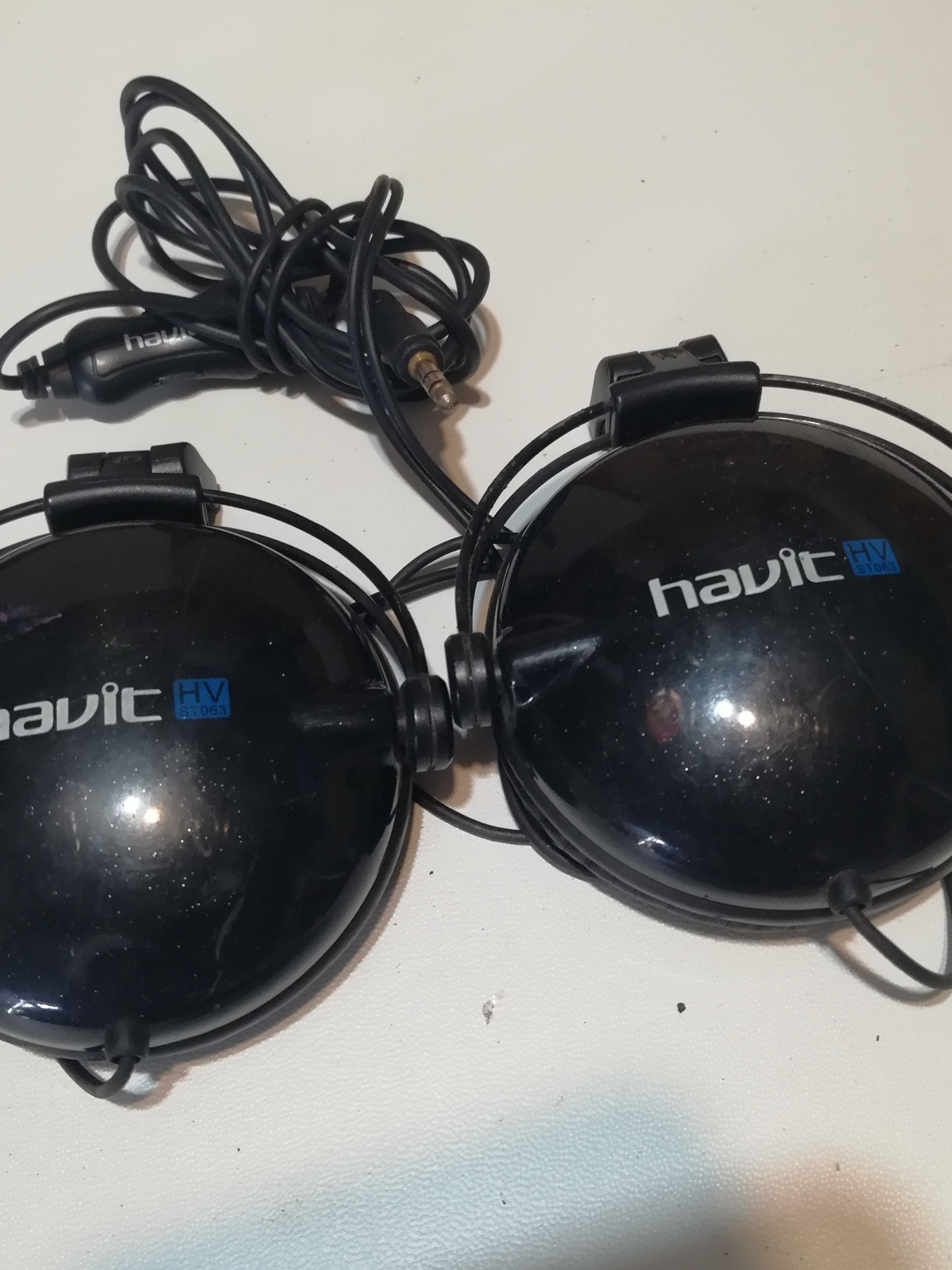 هدفون حلقه روی سر ندارد. حلقه ارتباطی بین دو گوشی شکسته است و موجود نیست. دوتا گوشی سایز بزرگ با سیم های ارتباطی و قسمت ولوم و در انتها فیش aux. گوشی ها سالم و با کیفیت هستند