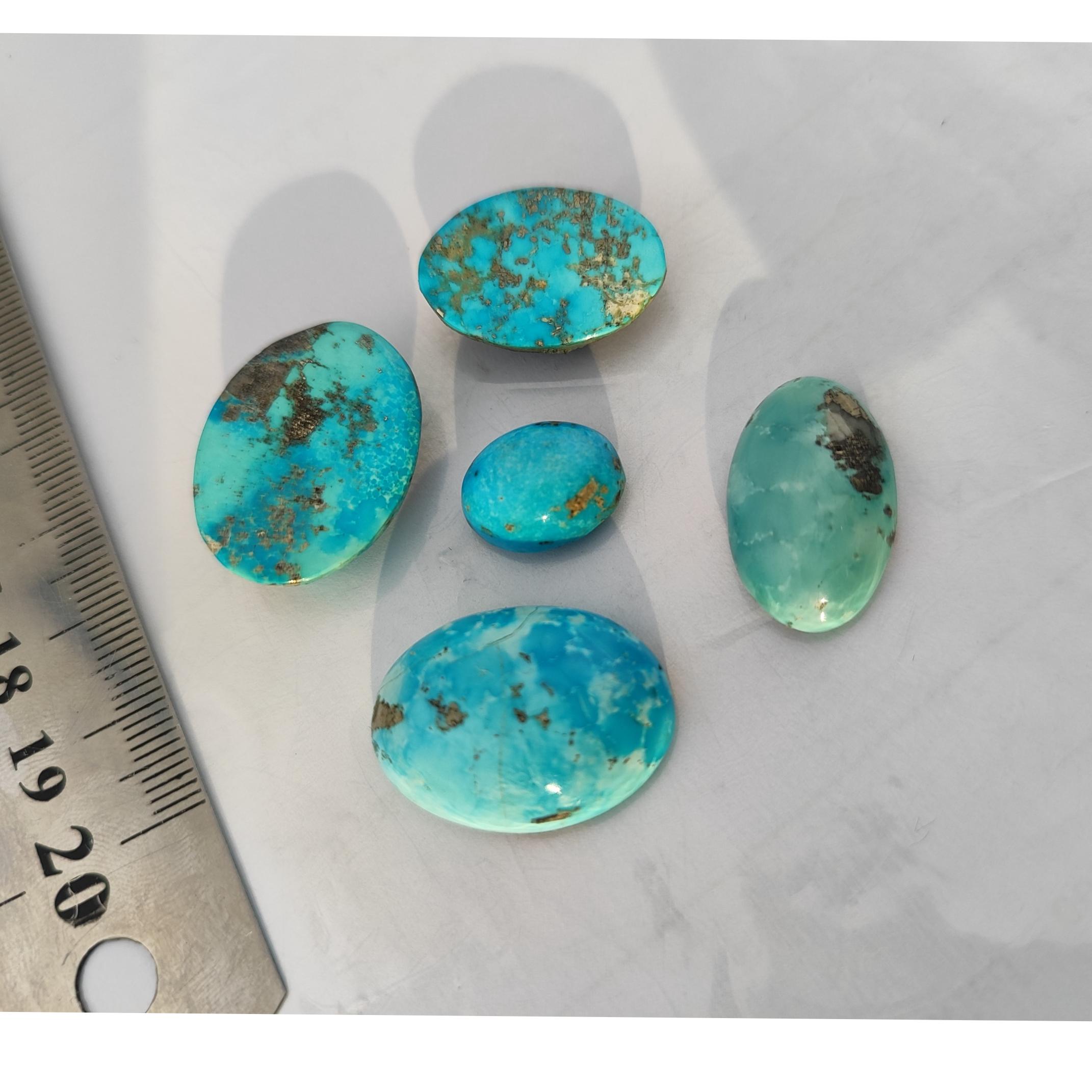 پنج عدد فیروزه کرمان 20 گرم بسیار خوش رنگ و خوش طرح