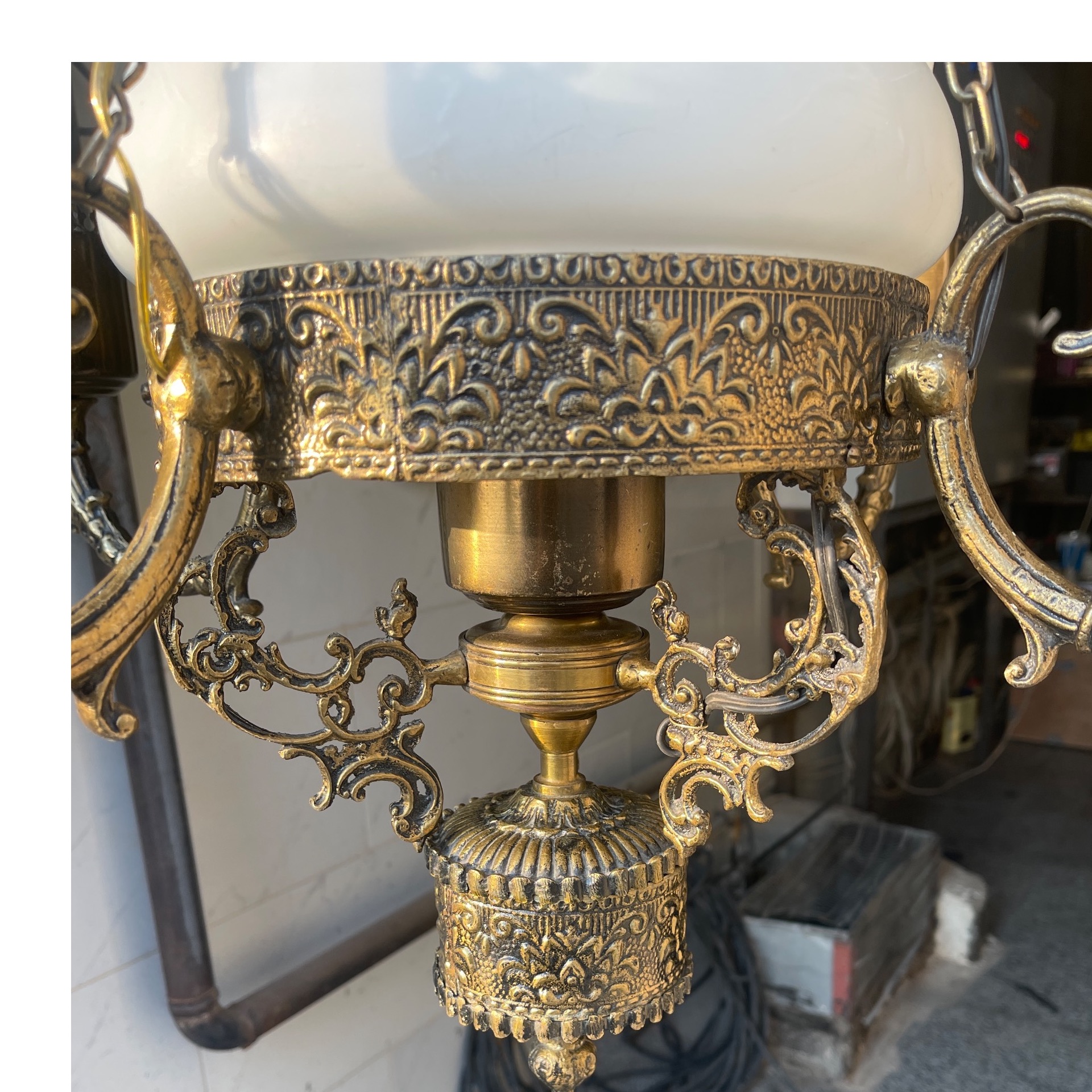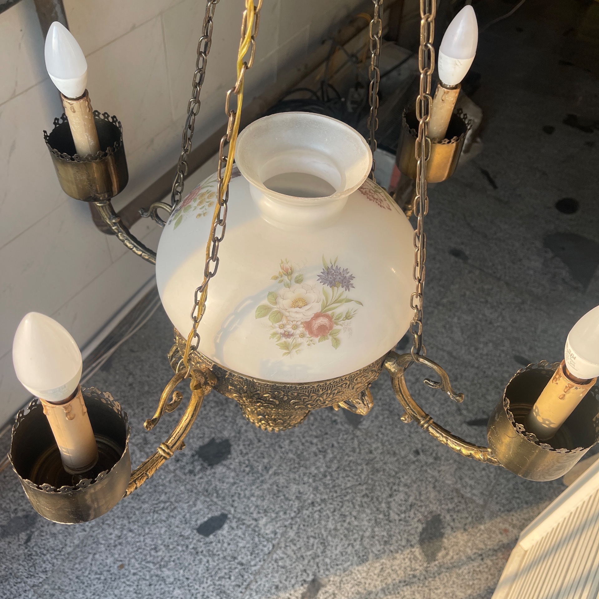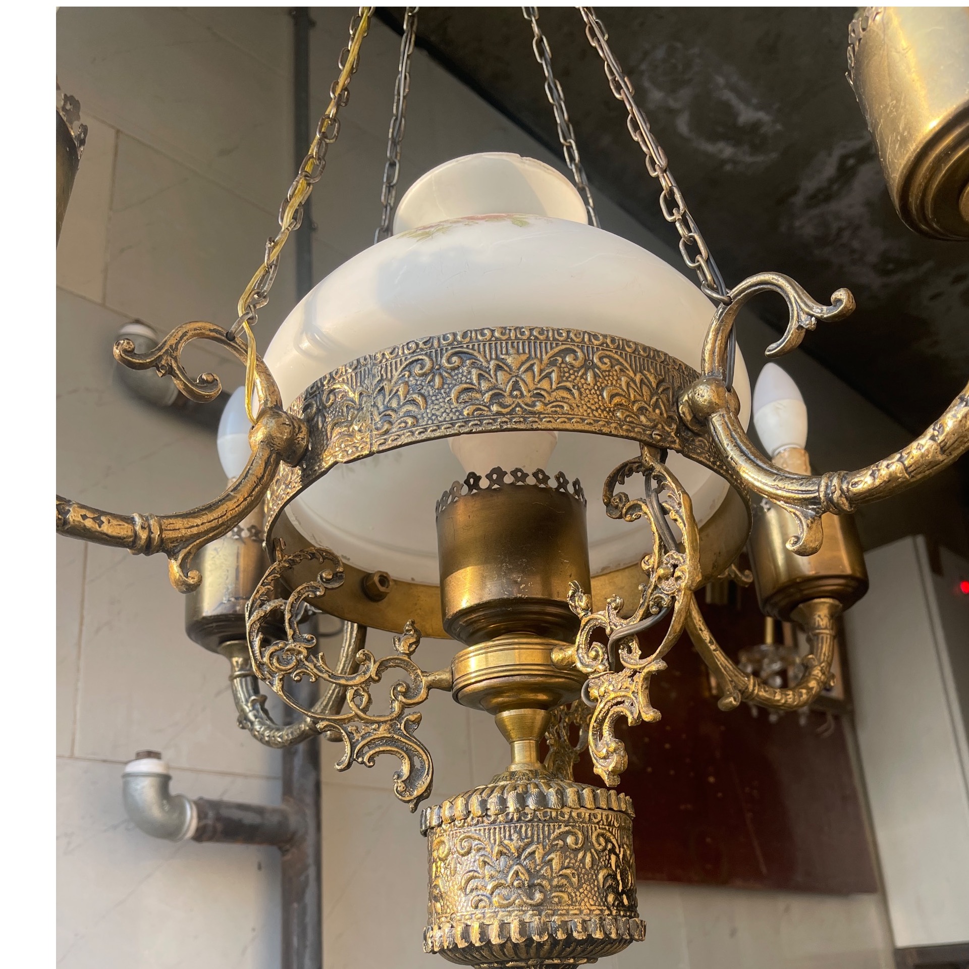 لوستر لنتر فرانسه آنتیک 120 ساله با حباب فابریک