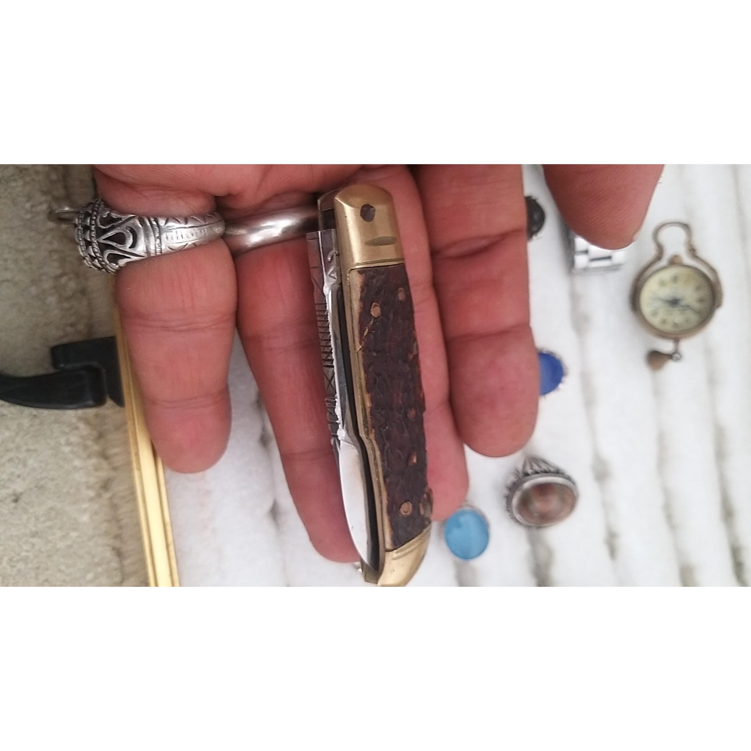 یک عدد چاقو ساخت زنجان. استاد مرحوم رحیم بهشتی. دسته استخوان و بدنه برنج . تیغه بادامی