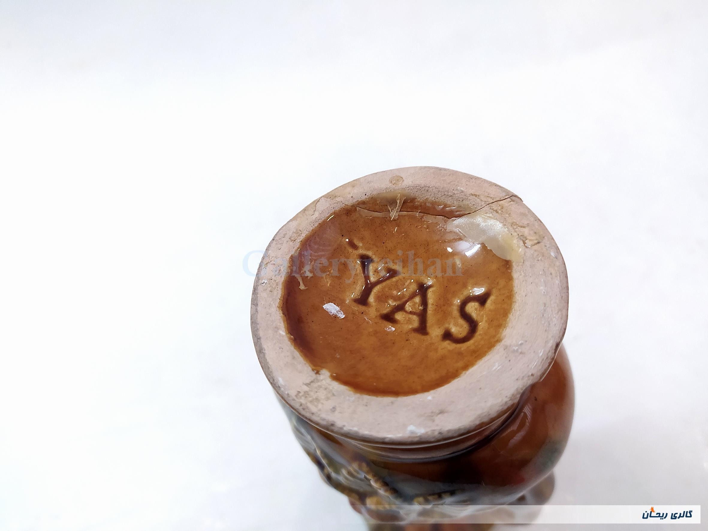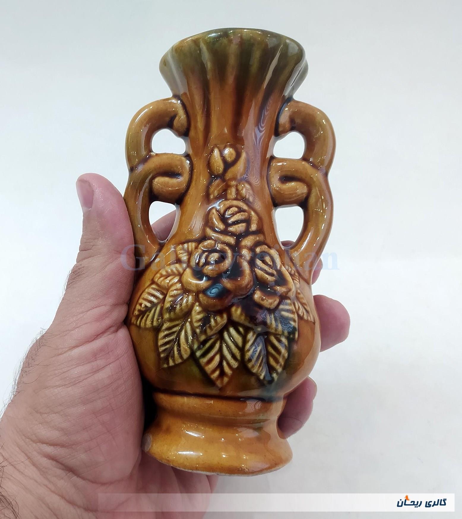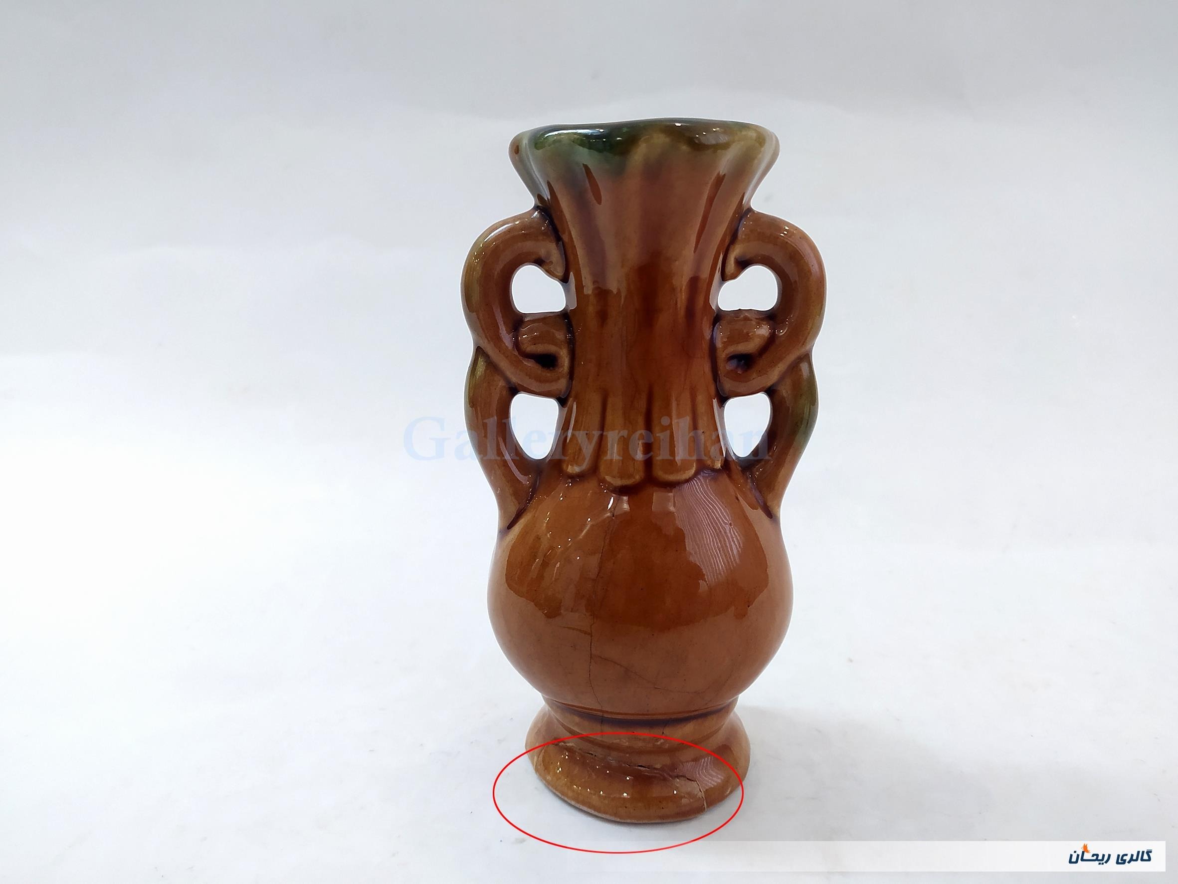 گلدان سفالی قدیمی لعابدار طرح گل (کد47561)