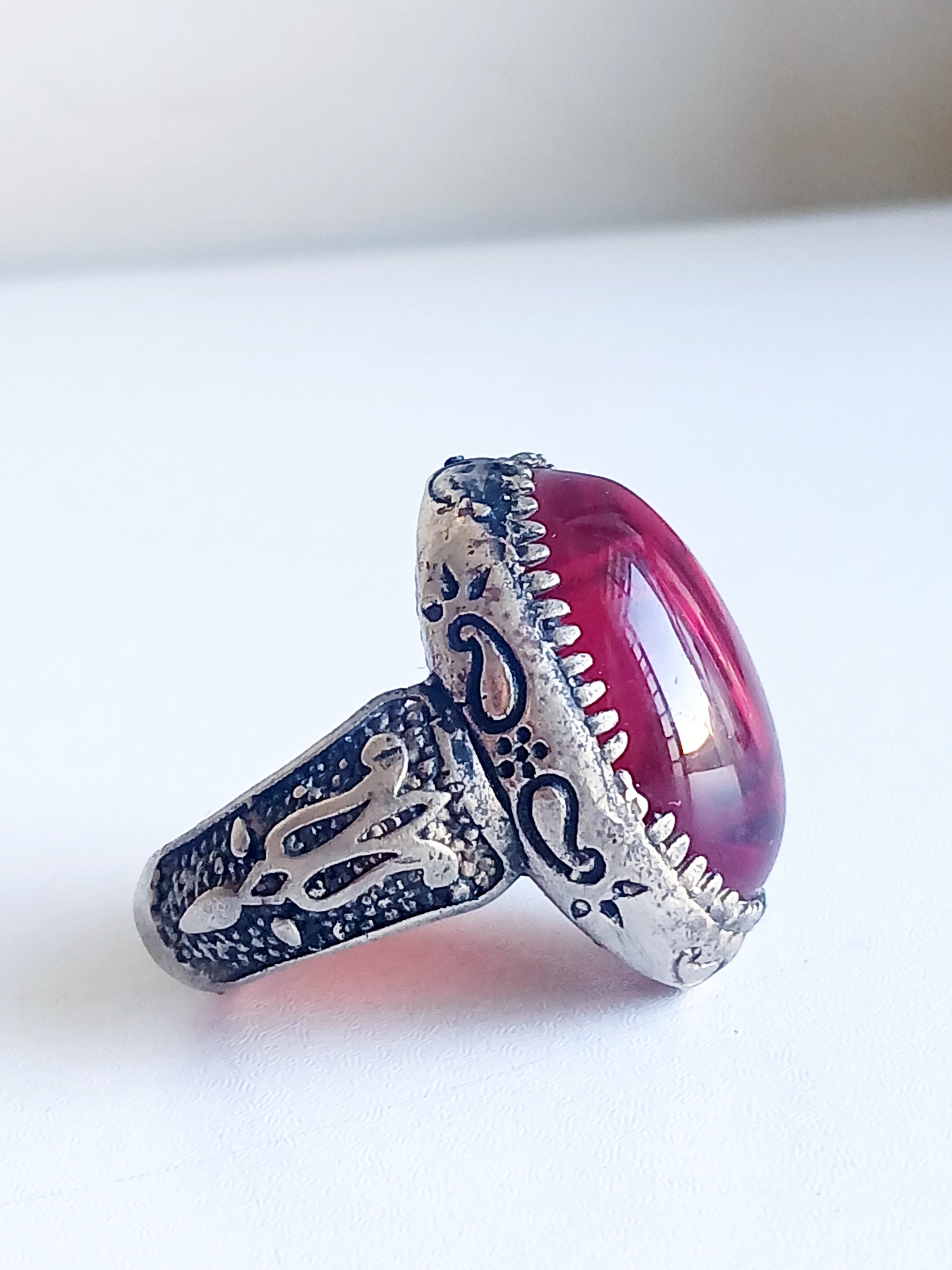 انگشتر لعل سرخ بسیار زیبا کیفیت عالی