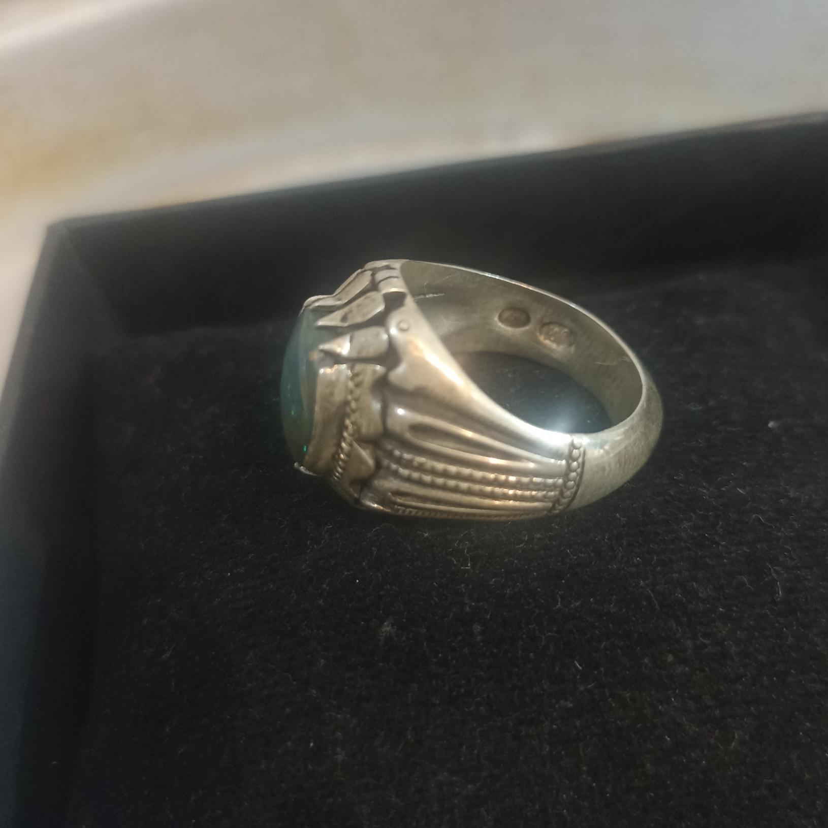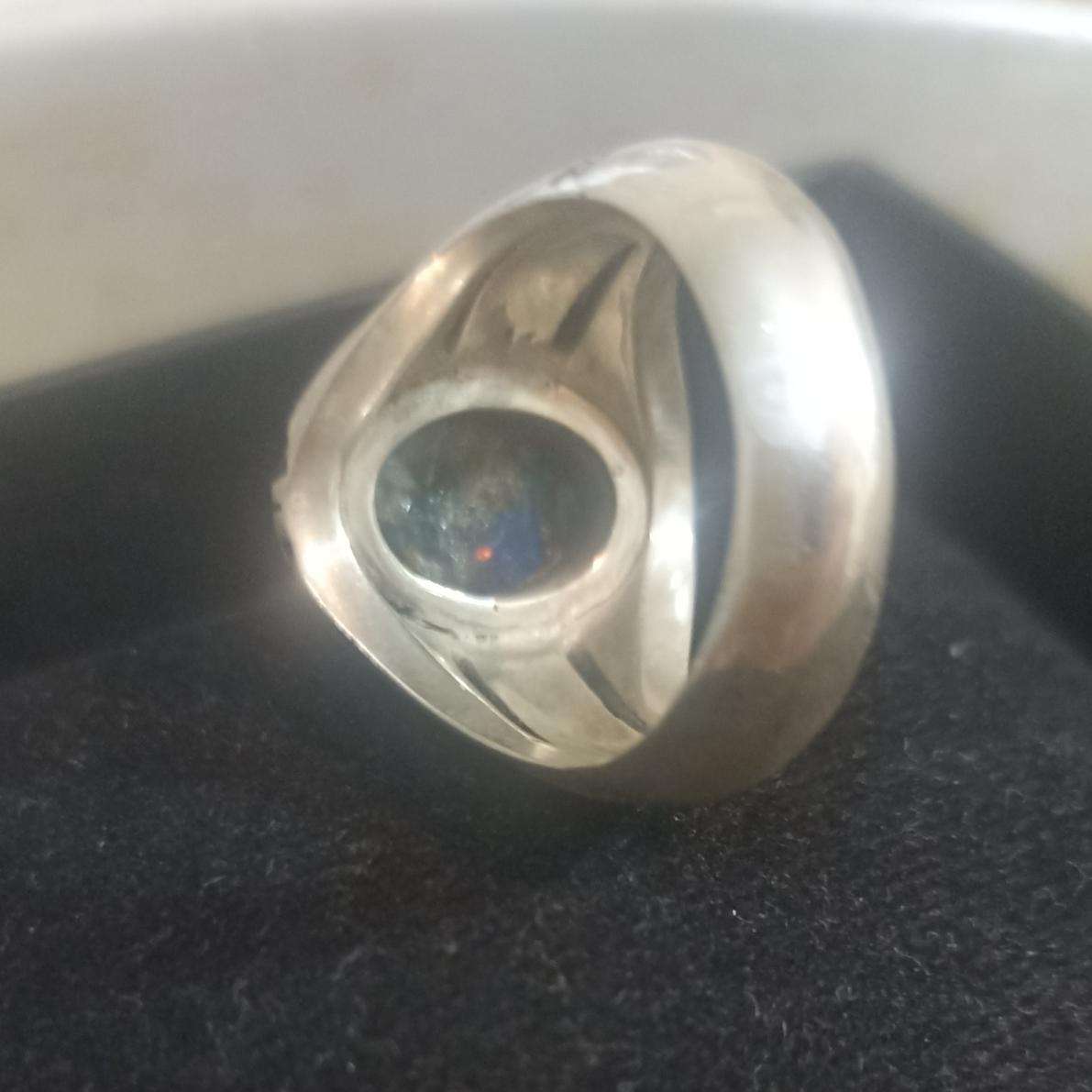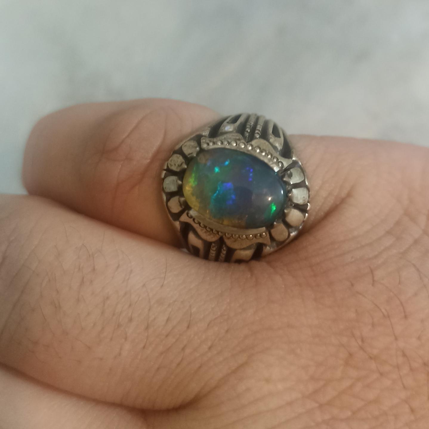 انگشتر نقره با نگین اوپال آبی