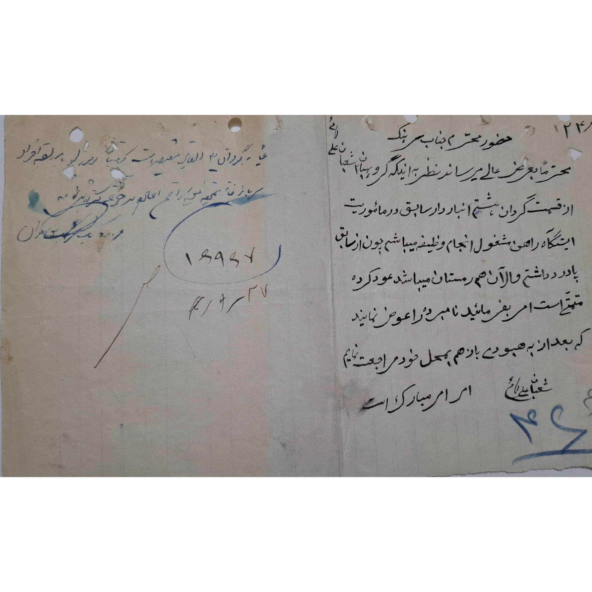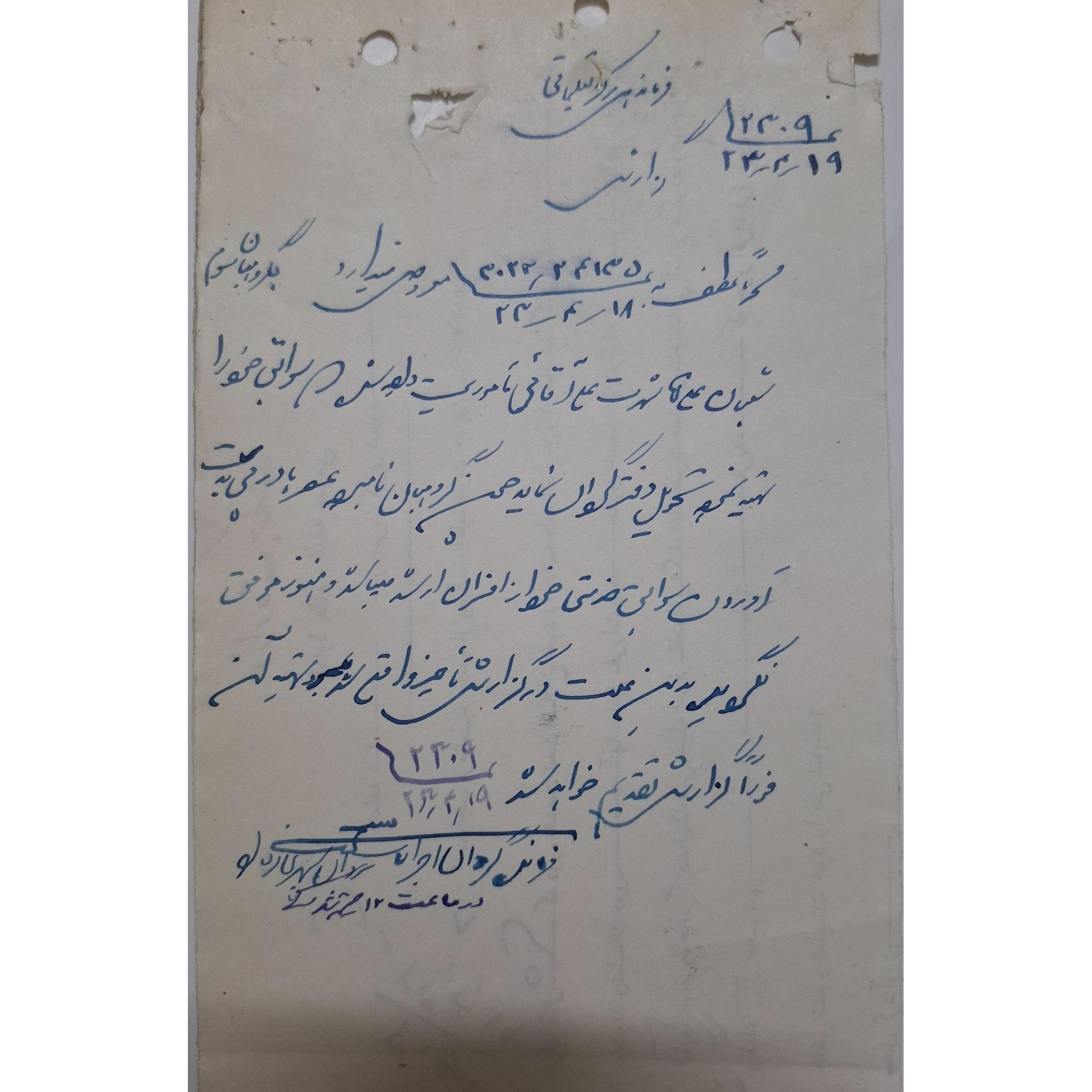 2 برگ نامه و گزارش مرکز تعلیماتی و گزارش مربوط به شعبانعلی علی آقایی