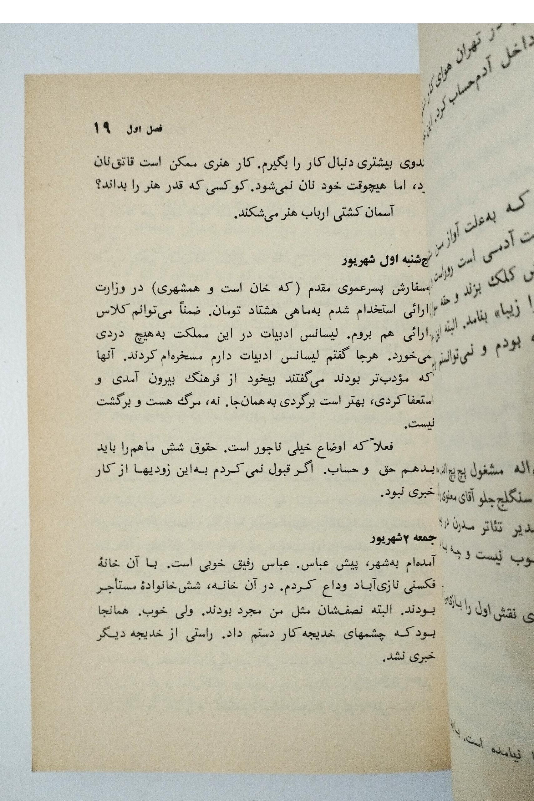 پدرم در آمد تا لیسانس گرفتم . فکر کردم خبری است و موقعی که لیسانسیه می شوم یک تاج افتخار بزرگ می گذارند روی سرم .اتفاقا هیچکس محلم نگذاشت . دیروز رفتم پیش رئیس کارگزینی که آقا من در این مملکت لیسانسیه ام و با این شندرقاز حقوق نمی توان زندگی کنم...