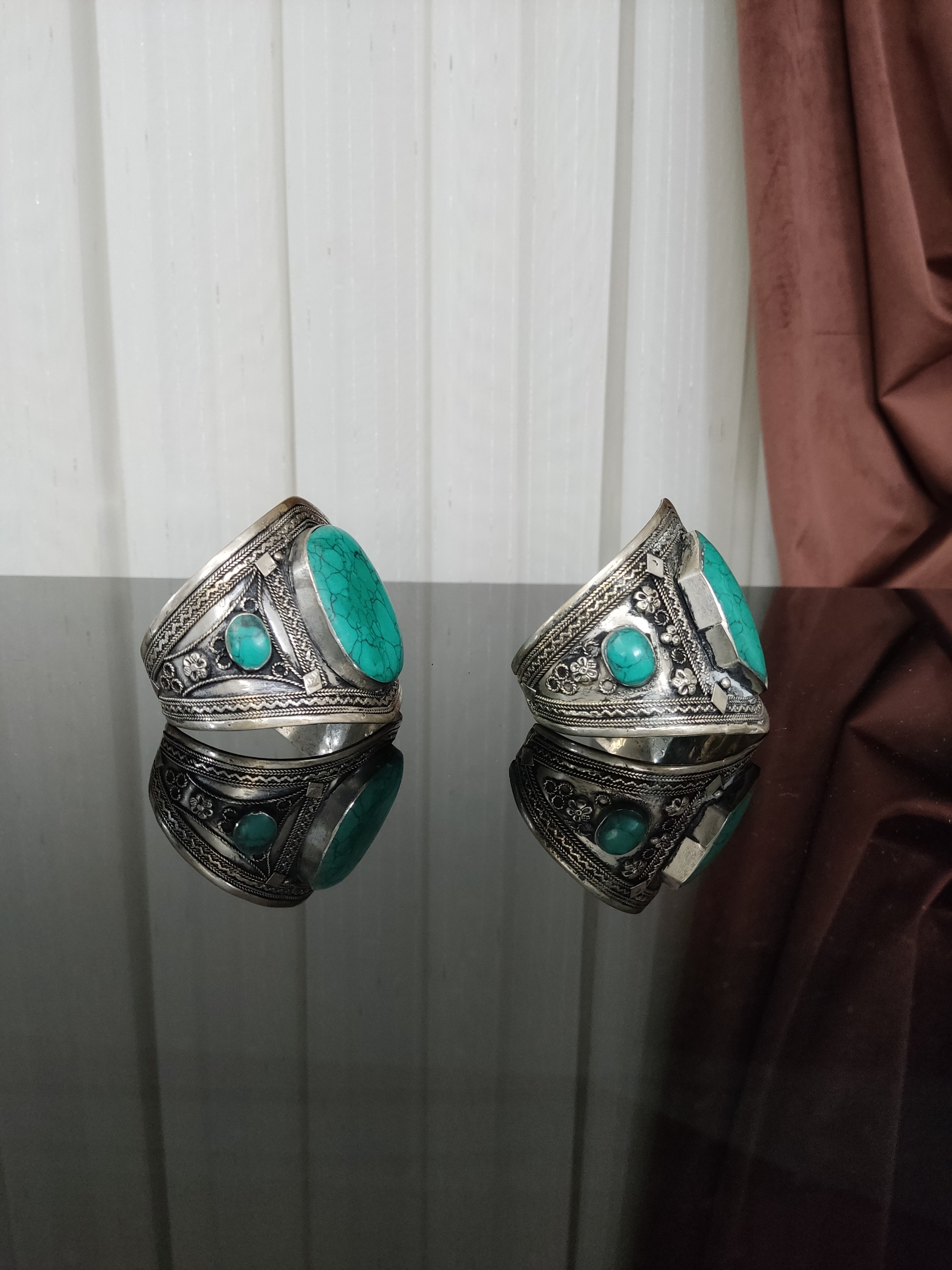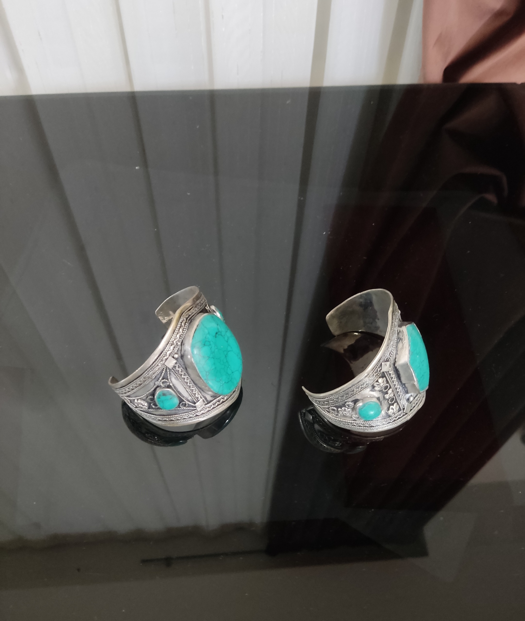 دو عدد دستبند ورشو قاجاری با سنگ فیروزه آنتیک و کلکسیونی مطابق تصویر به قطر 7 سانتیمتر خواهشمندم از دیگر کالاهای اینجانب دیدن فرمایید.