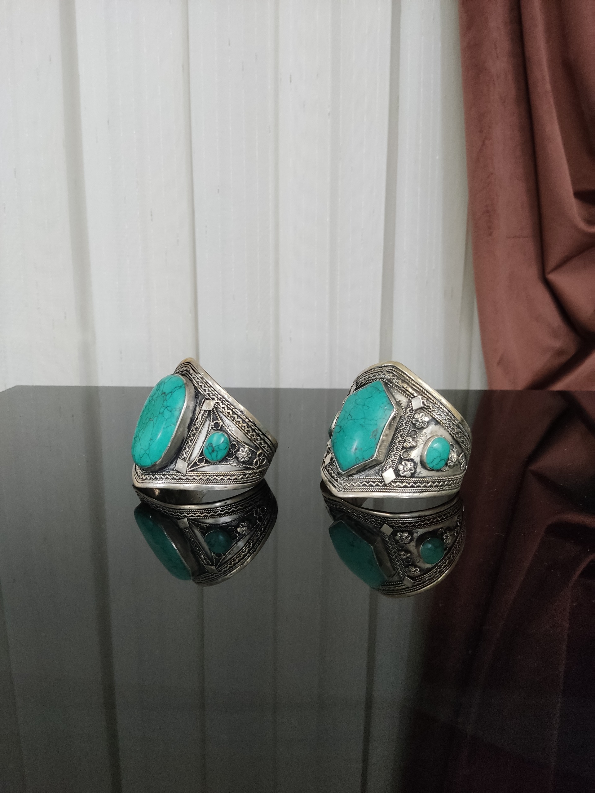 دو عدد دستبند آنتیک ورشو با سنگ فیروزه