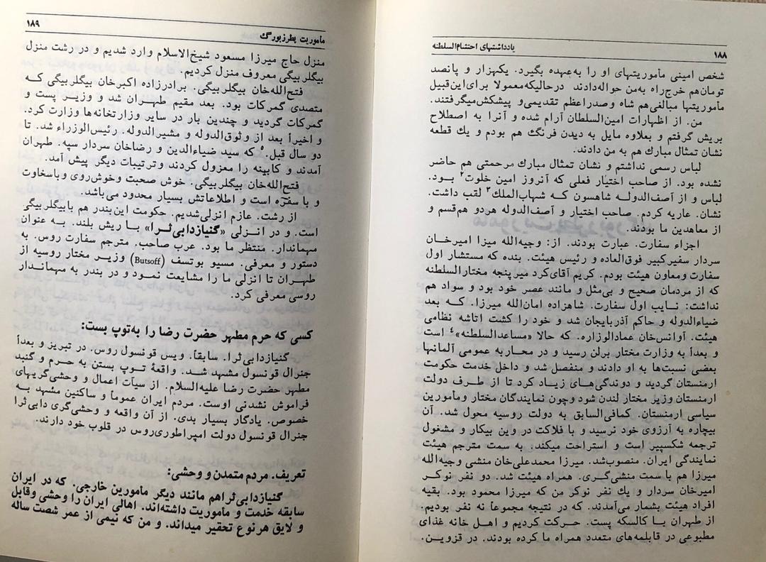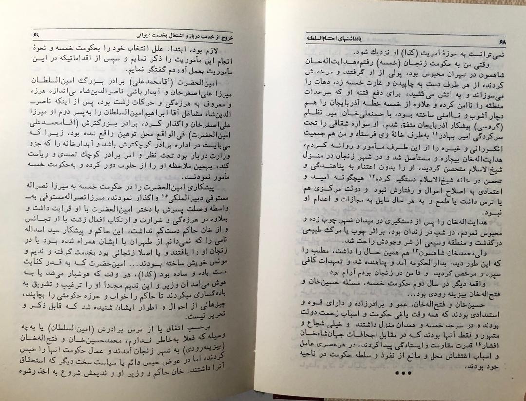 خاطرات در مراحل مختلف زندگی سیاسی فرهنگی و اجتماعی همراه با شرحی درباره برخی رجال مشروطه است. نویسنده ضمن استفاده از خاطرات وی مقایسه ای تطبیقی با منابع و اسناد و مدارک دیگر صورت داده است.