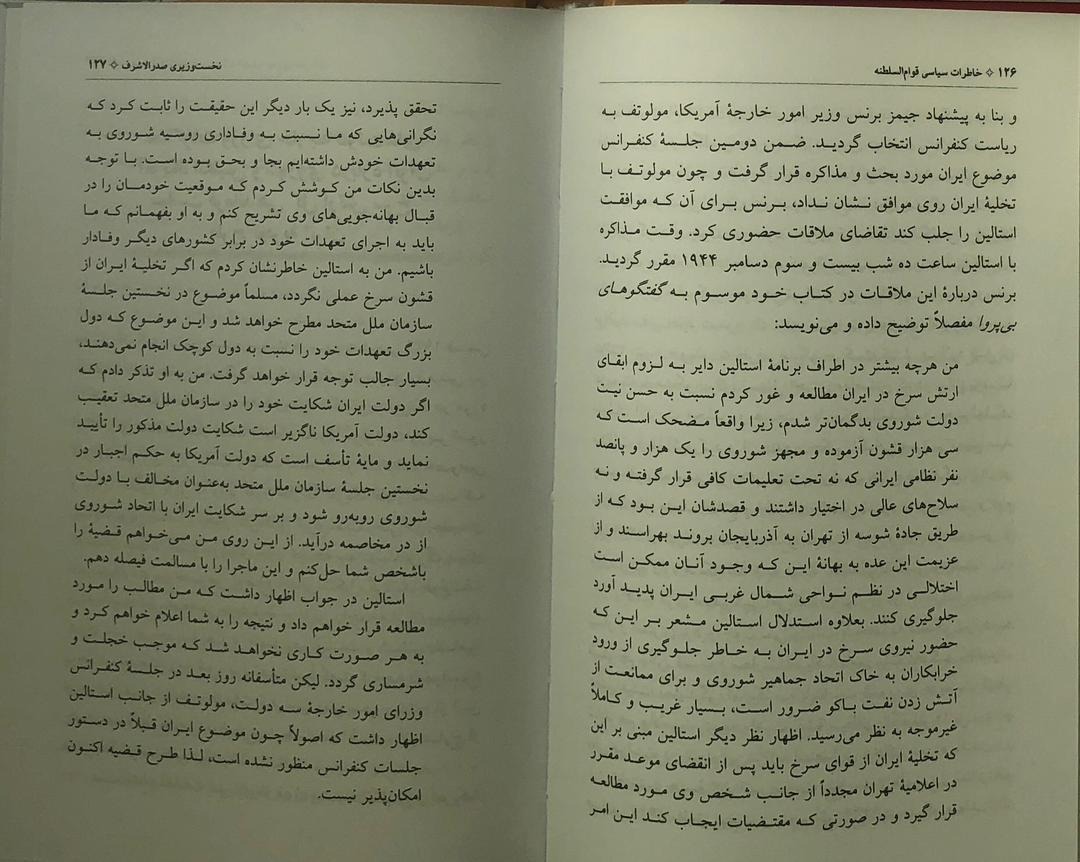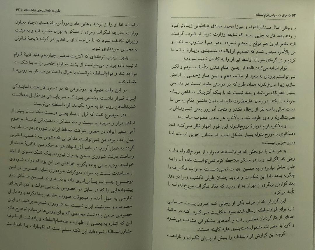 قوامالسلطنه در آغاز یادداشتهای خود پس از شرح مسافرت به مسکو و ملاقات با ژنرالیسم استالین نوشته است: من با یک صفای باطن نسبت به روسها به مسکو رفتم، درحالیکه با یک مغز پر تزویر درباره آنها به تهران بازگشتم...