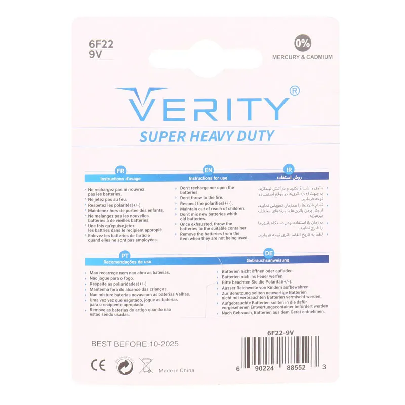 باتری کتابی وریتی مدلSuper Heavy Duty 6F22 9V