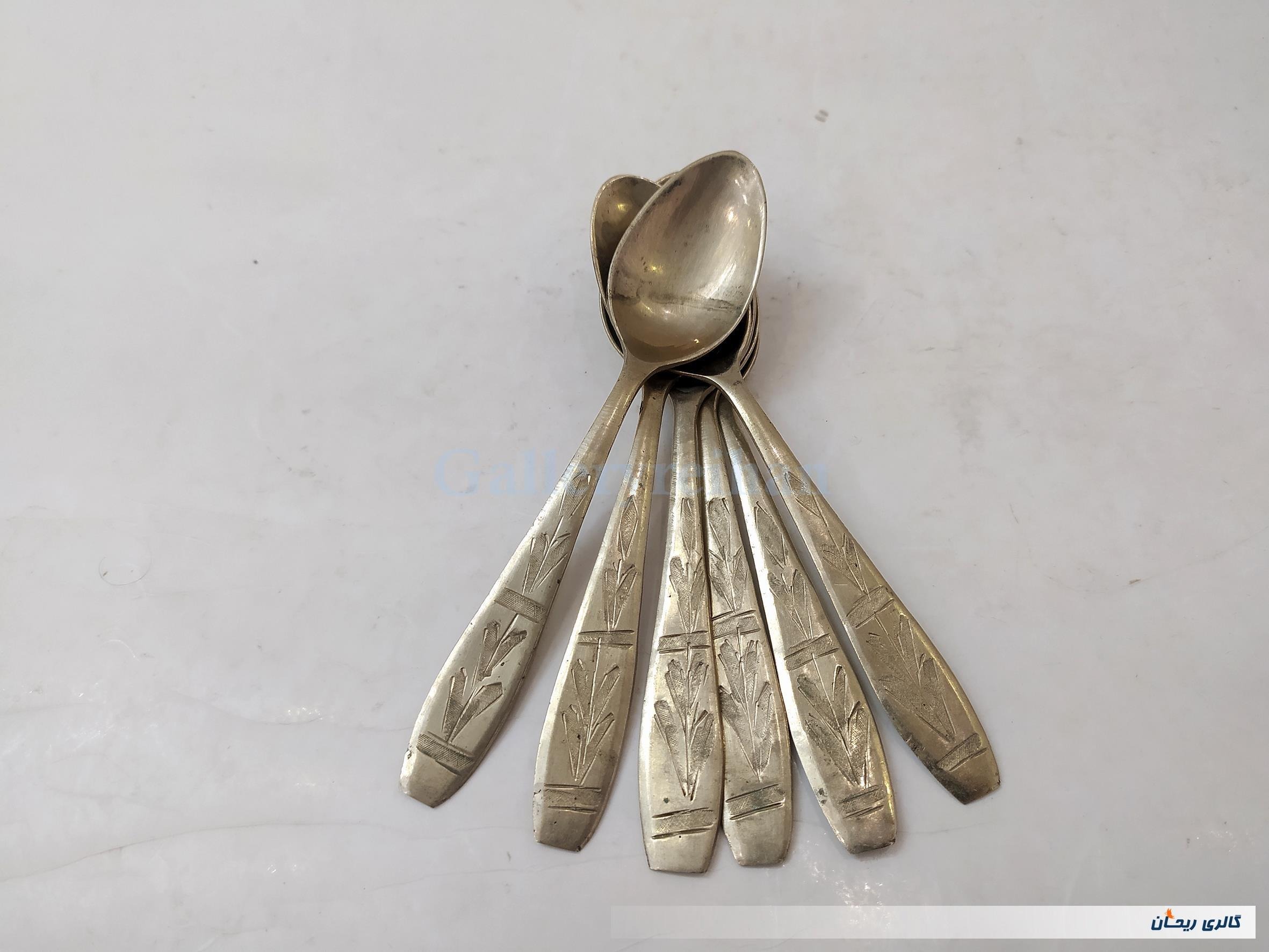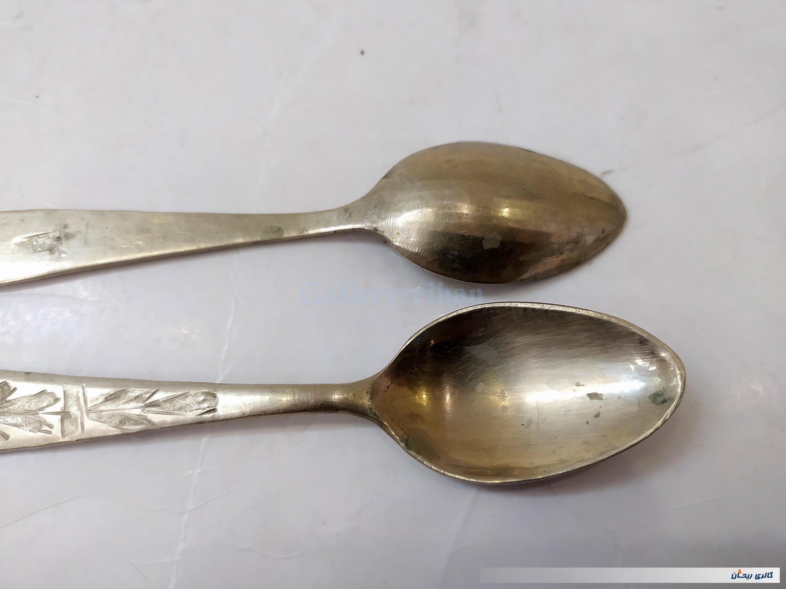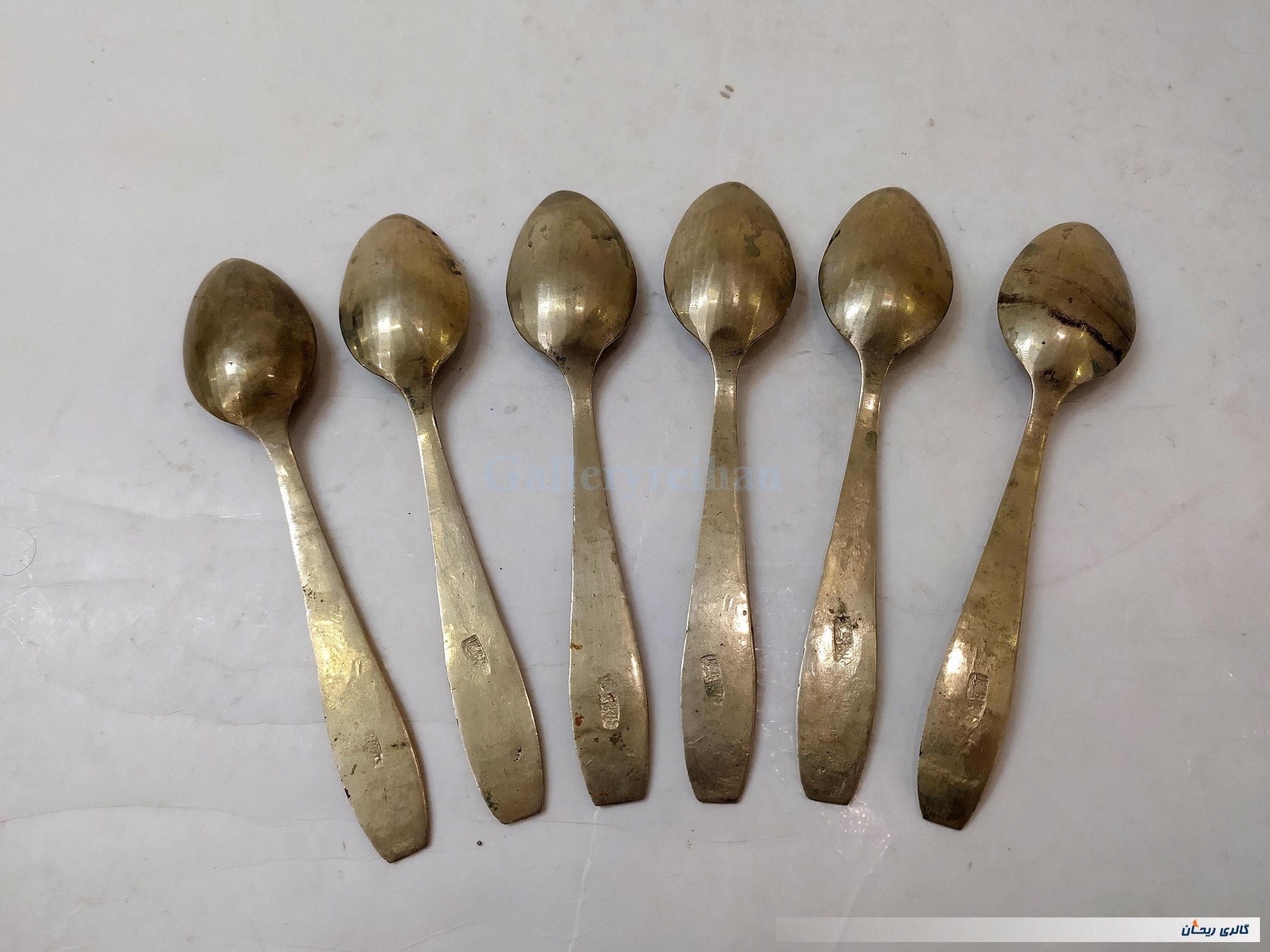 6 قاشق قلمدار قدیمی برنجی دستساز مهردار (کد47592)