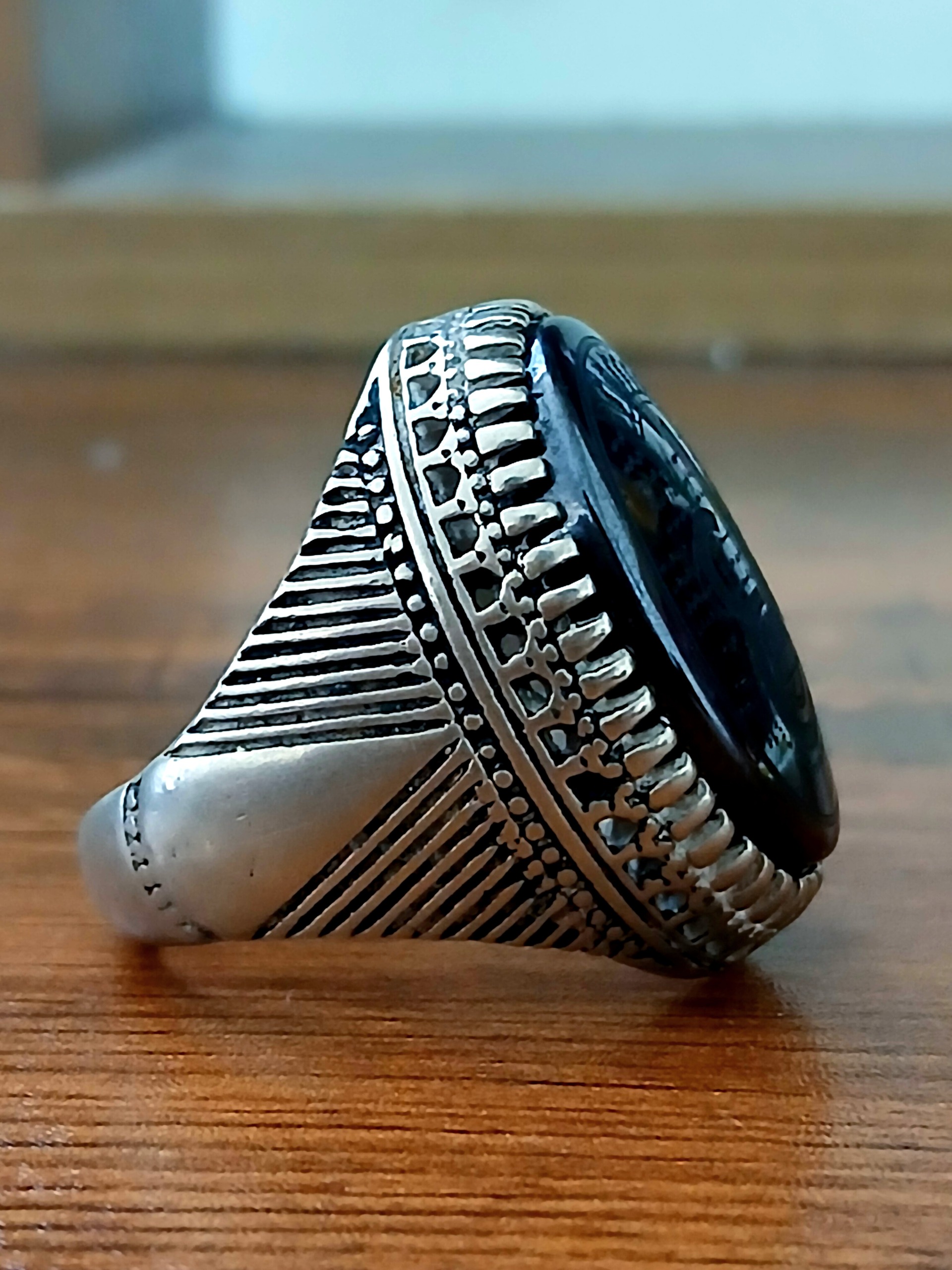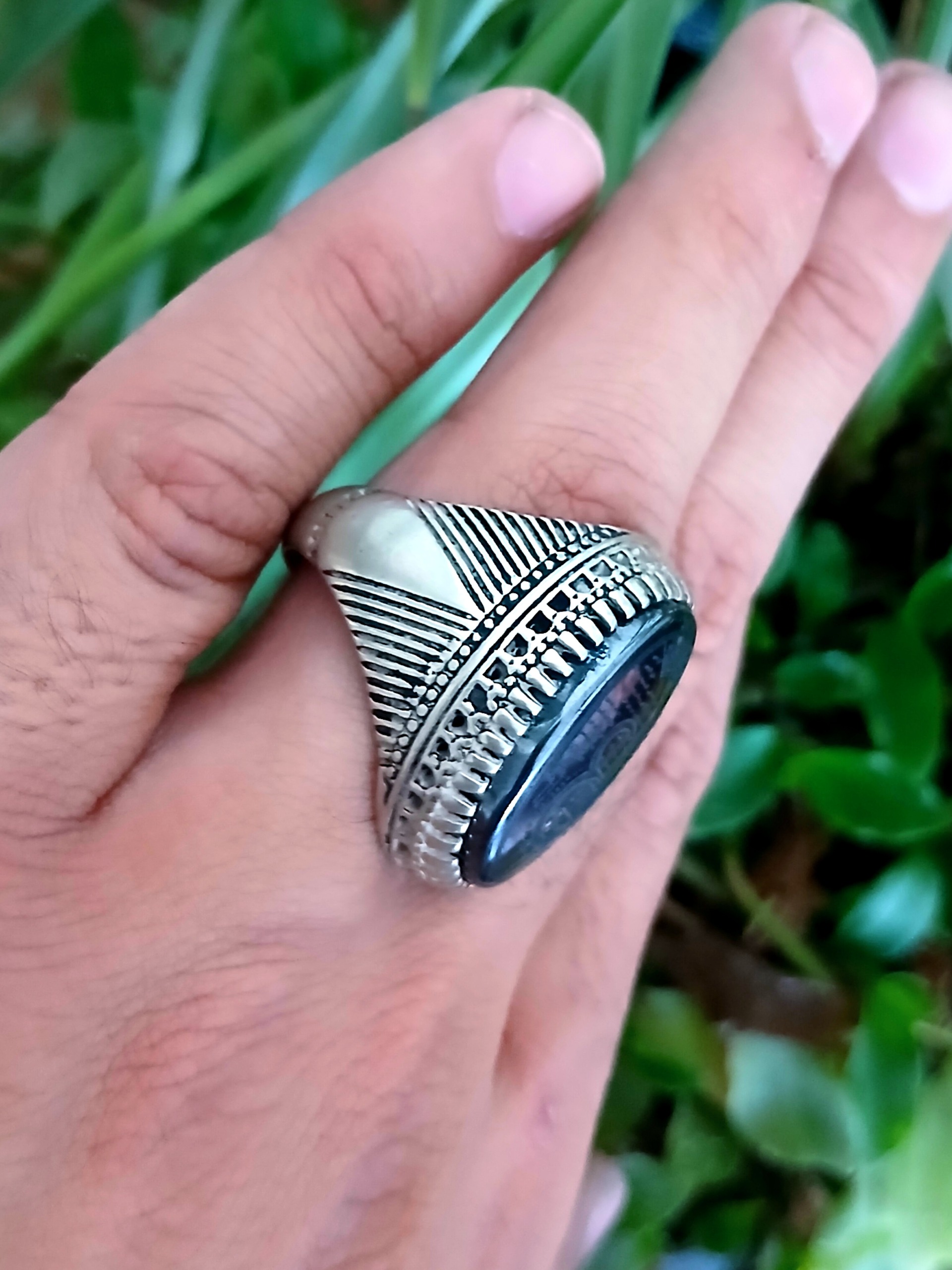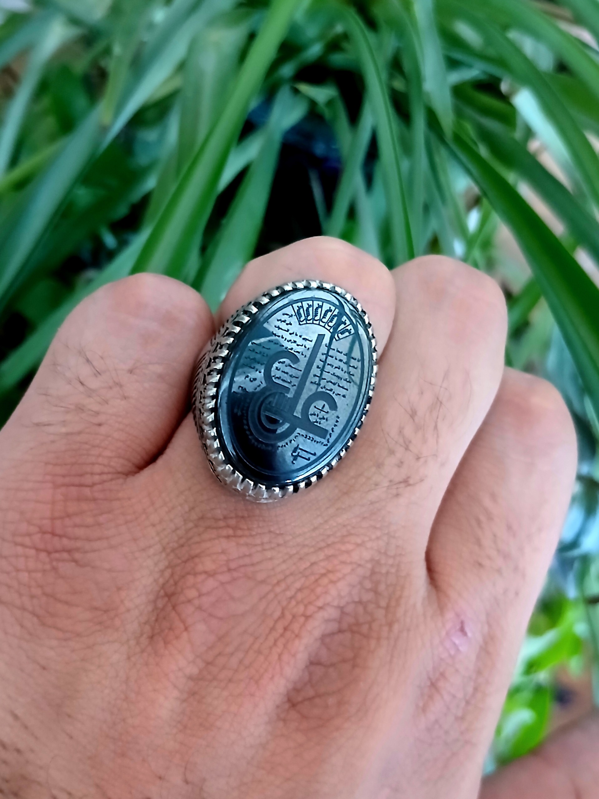 انگشتر نقره حدید یاعلی زیبا رکاب قلم زیبا