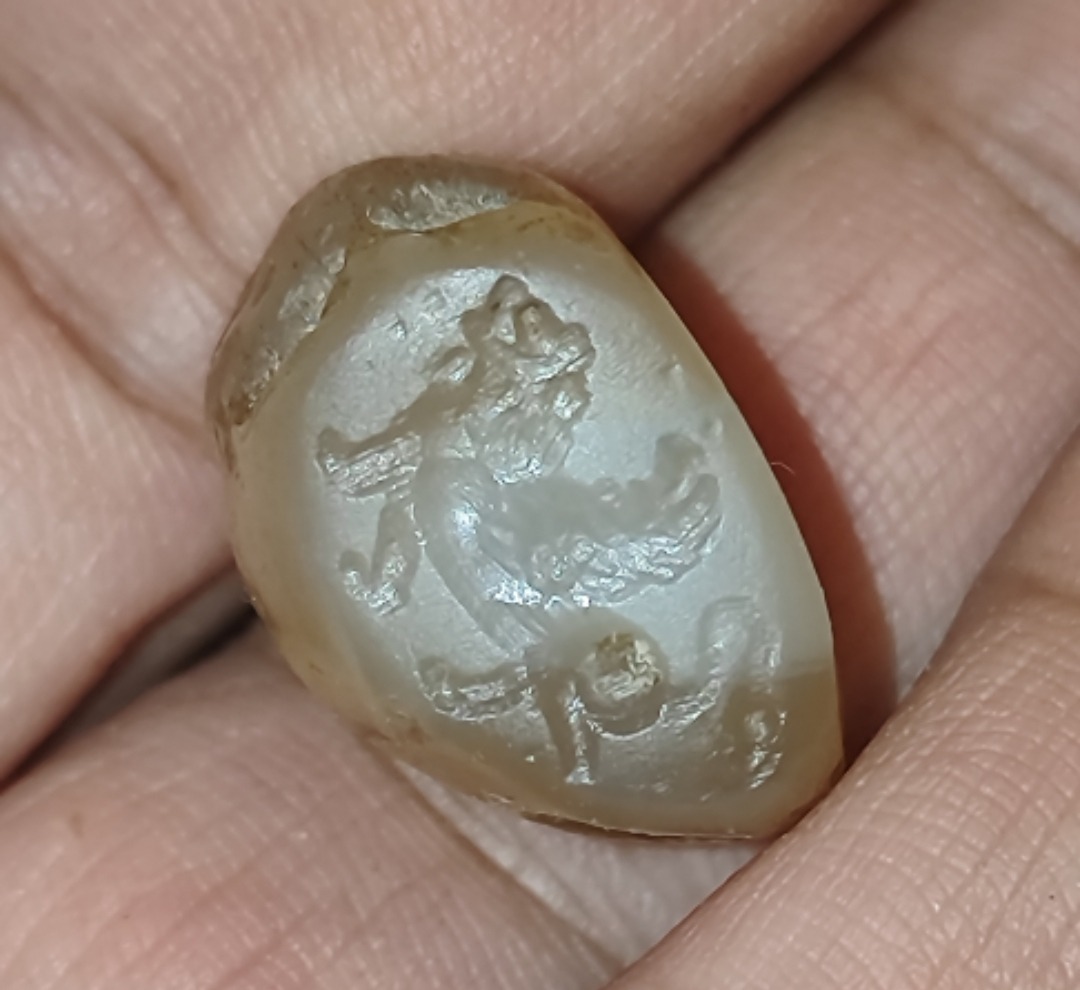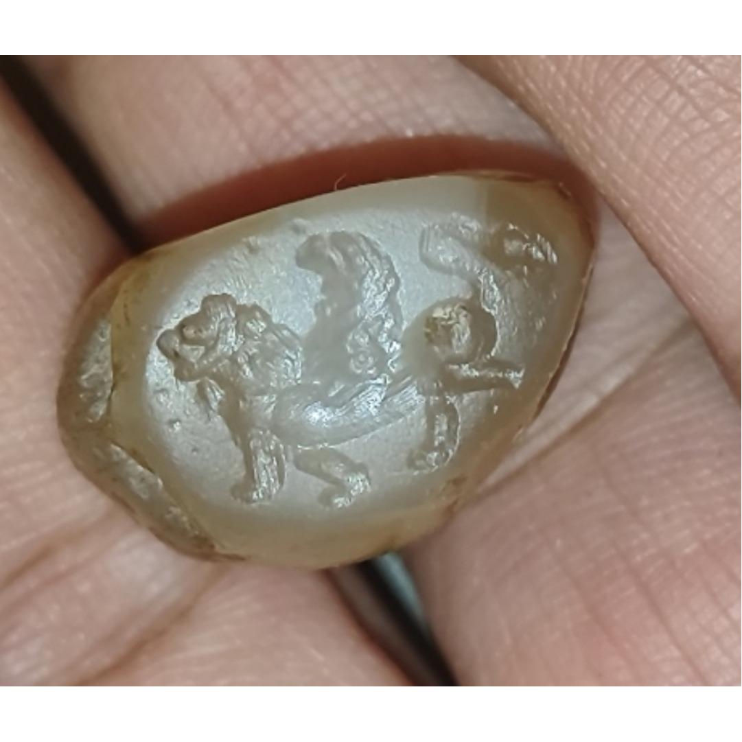 مهره عقیق کهنه و باستانی با نشان شیر بالدار