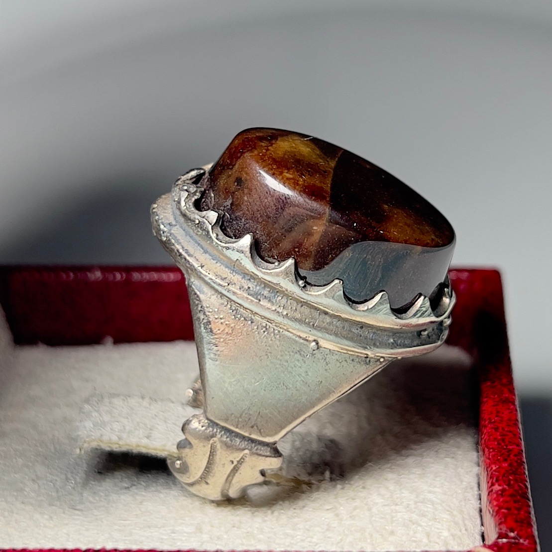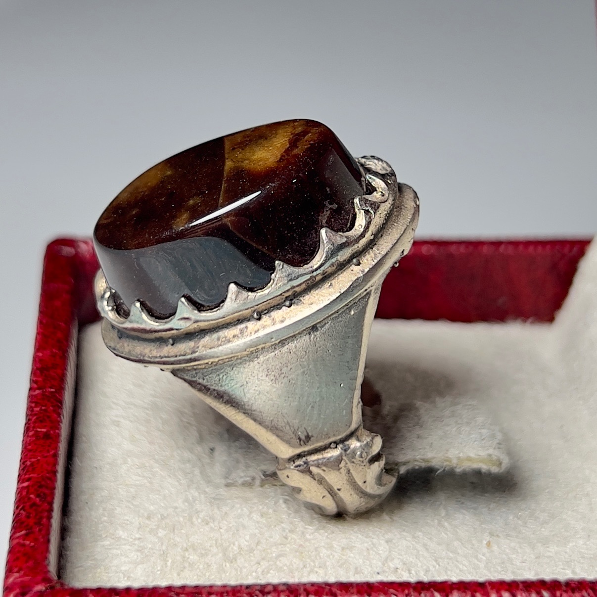 انگشتر جذاب نگین عقیق سلیمانی کلکسیونی