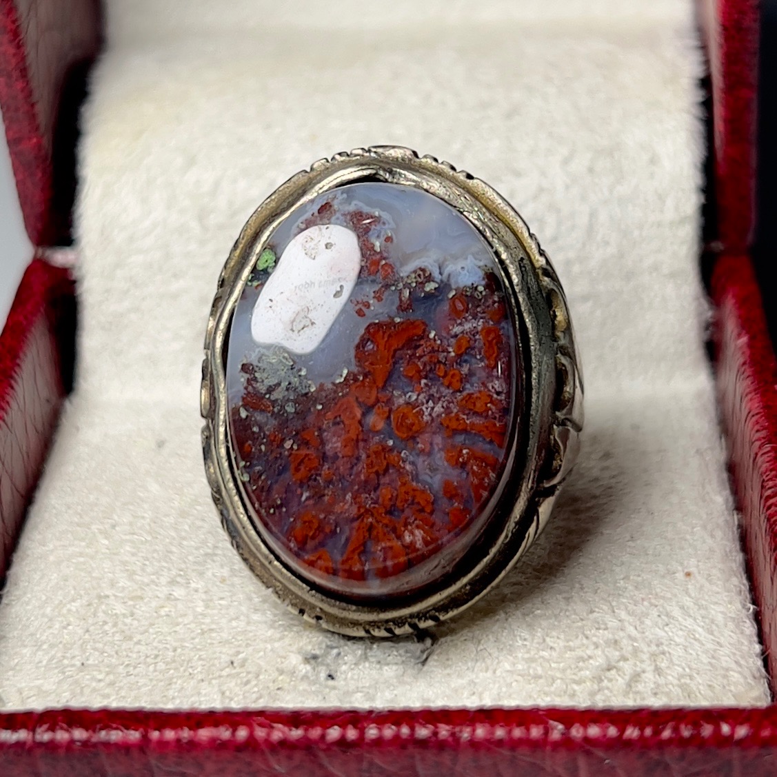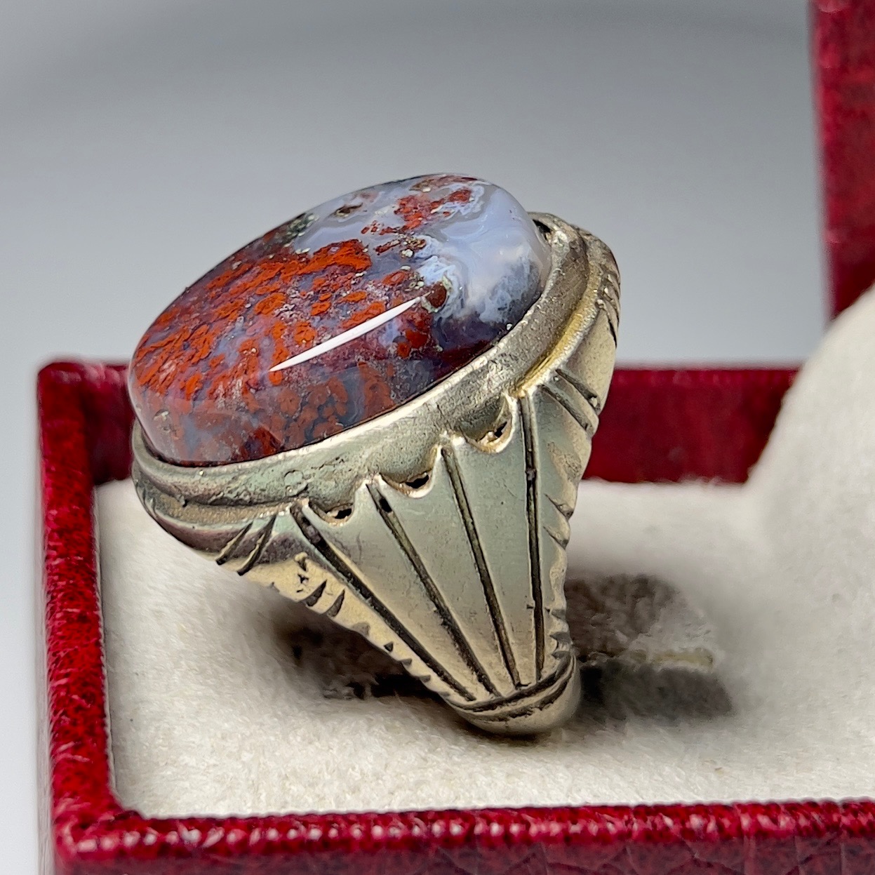 انگشتر جذاب نگین درشت شجرگل اناری زمینه سلیمانی