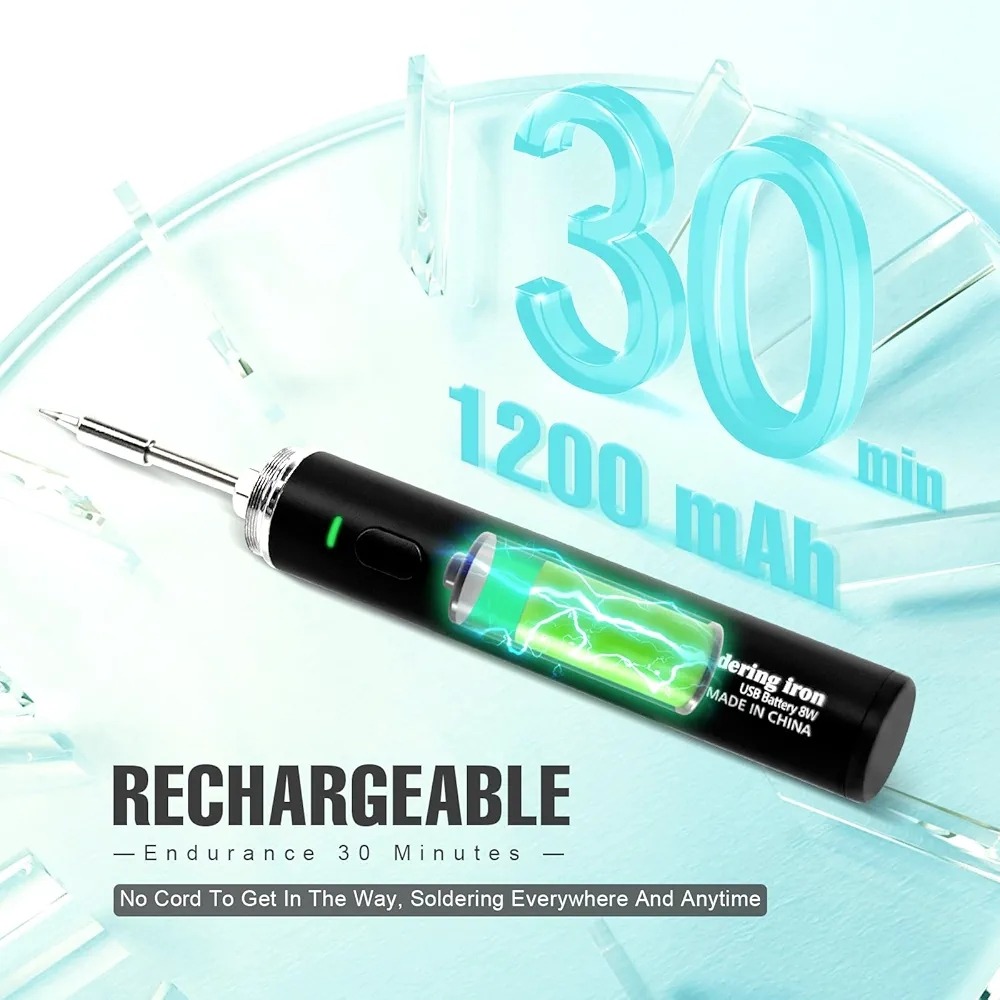 شارژ در حین استفاده: هویه لحیم کاری USB با قابلیت شارژ Type-C، به راحتی شارژ میشود و پس از شارژ کامل، میتوان به مدت 30 دقیقه به طور مداوم از آن استفاده کرد. وقتی باتری کم است، میتوانید هنگام شارژ از آن استفاده کنید.