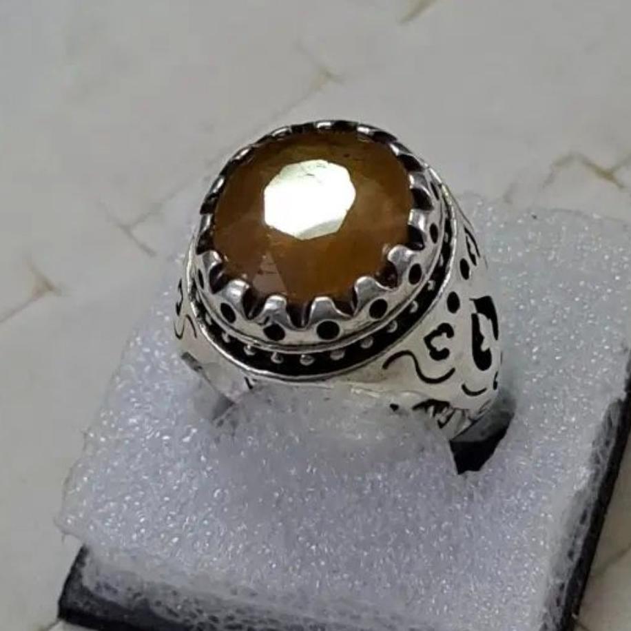 انگشتر یاقوت زرد افریقا،با سنگ کاملا طبیعی،رنگ زیبا،تراش الماسی،با رکاب دست ساز،حک دومهر سازنده،که در تصاویر هم مشخص هست،