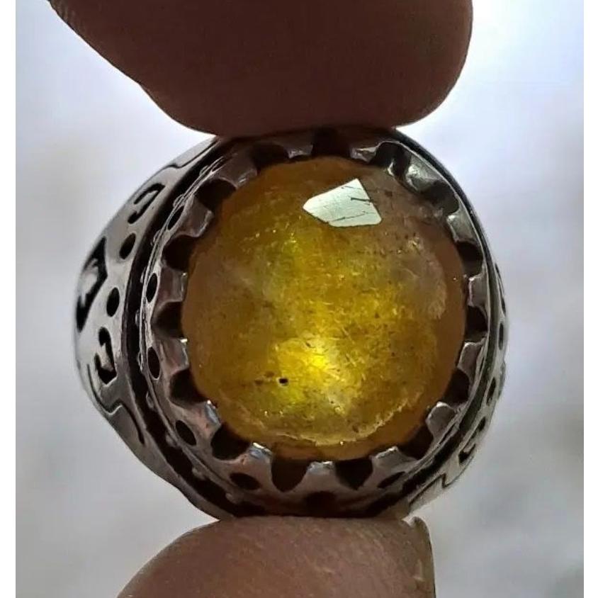 انگشتر دستساز یاقوت زرد افریقا،تراش الماسی،925