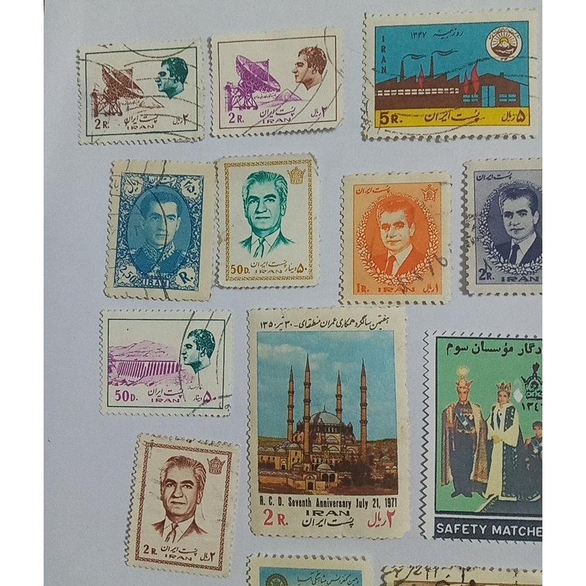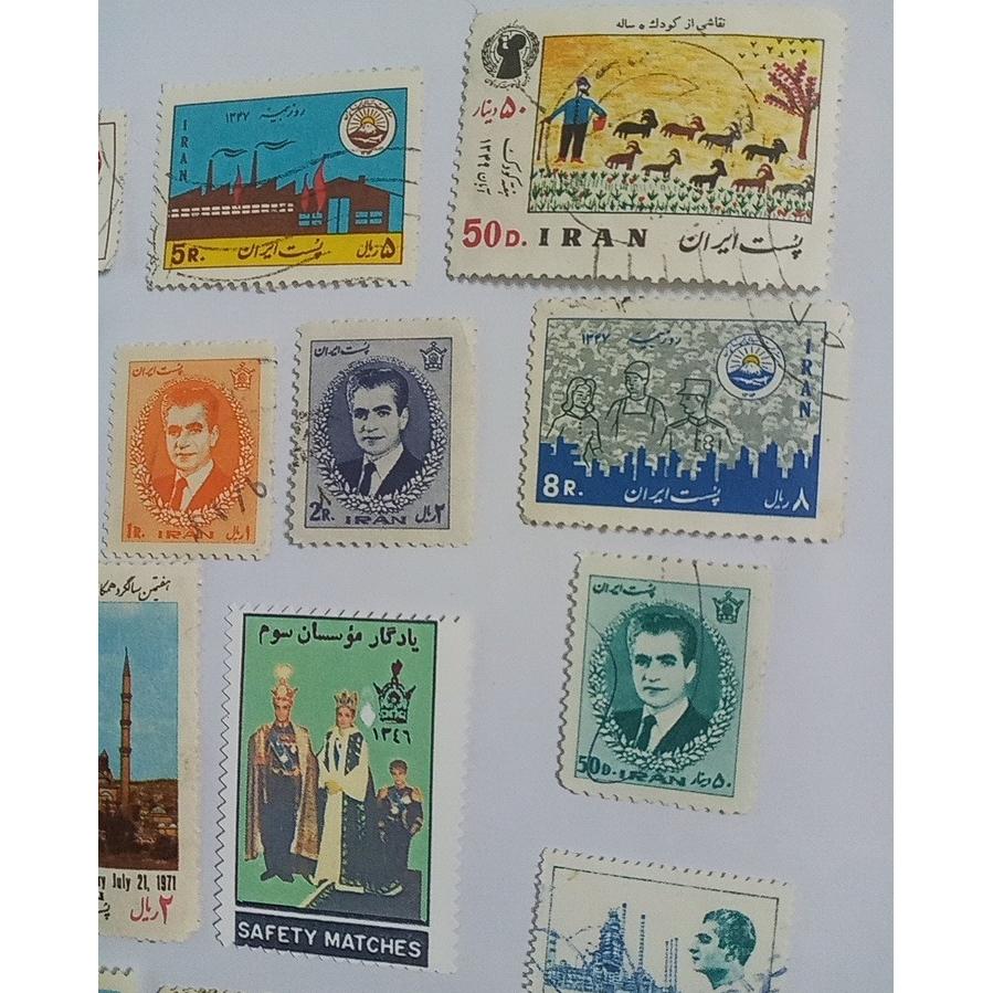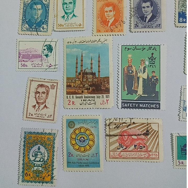 تعدادی تمبر زیبای پهلوی /یکیشون لیبل گلاسه هستش یادگار موسسان سوم/بقیه تمبر هستن