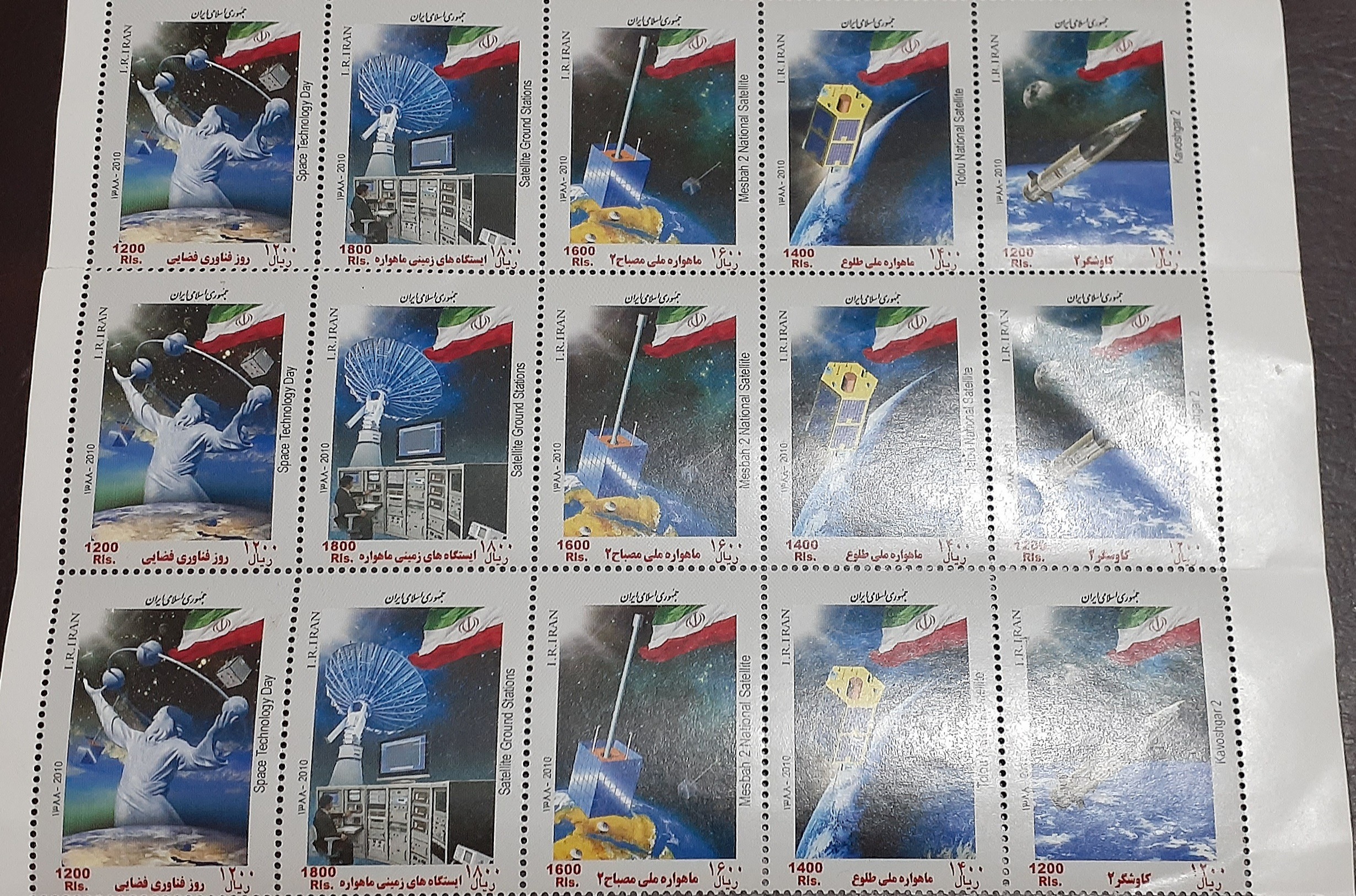 3 سری تمبر فضایی ایران شامل 15 عدد تمبر