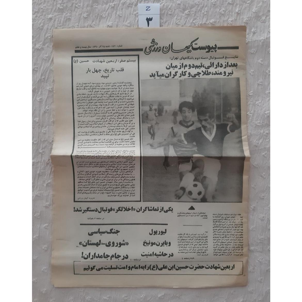 3. 28 آذر 1360 پارگی مختصر گوشه پایین صفحه اول