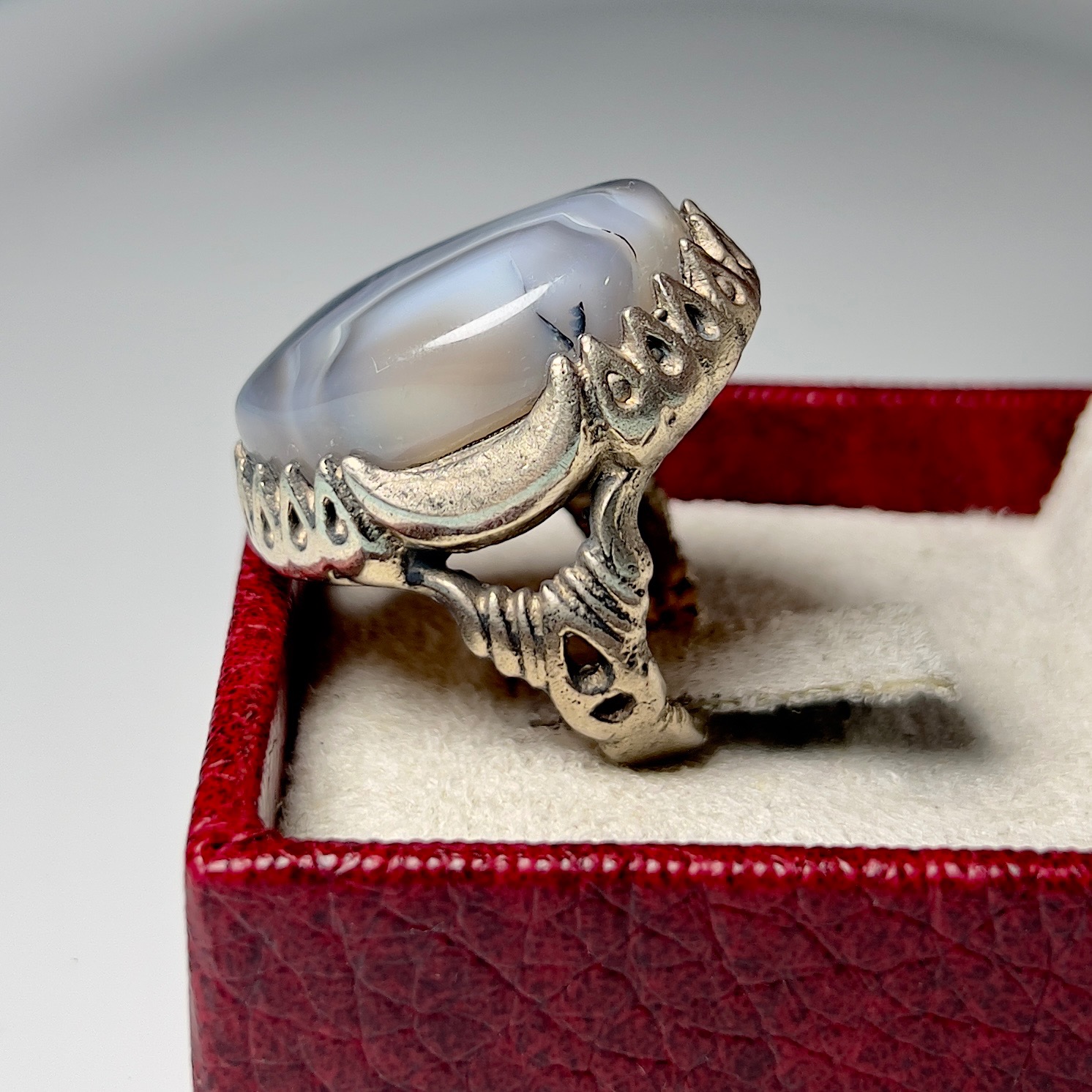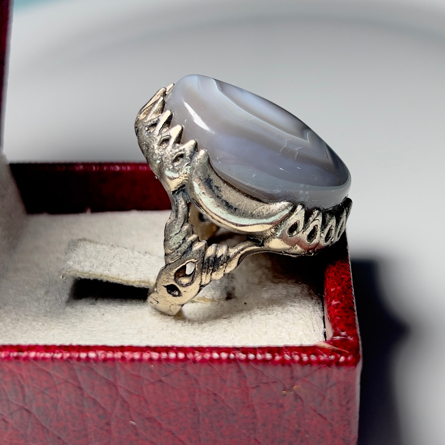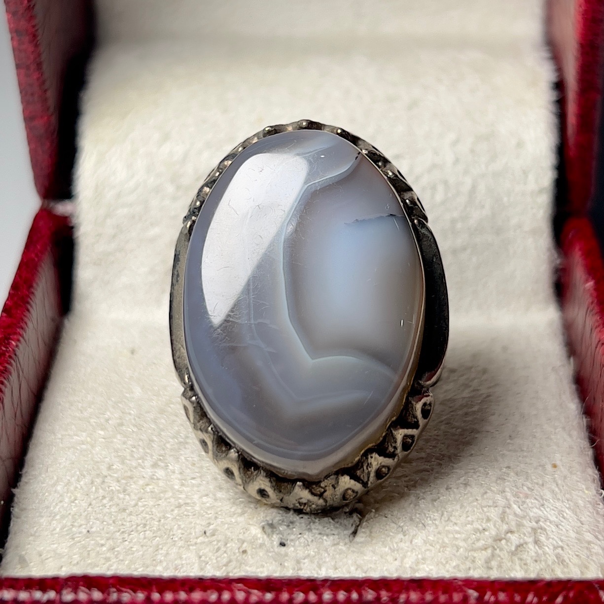 انگشتر لوکس نگین درشت عقیق سلیمانی موجدار