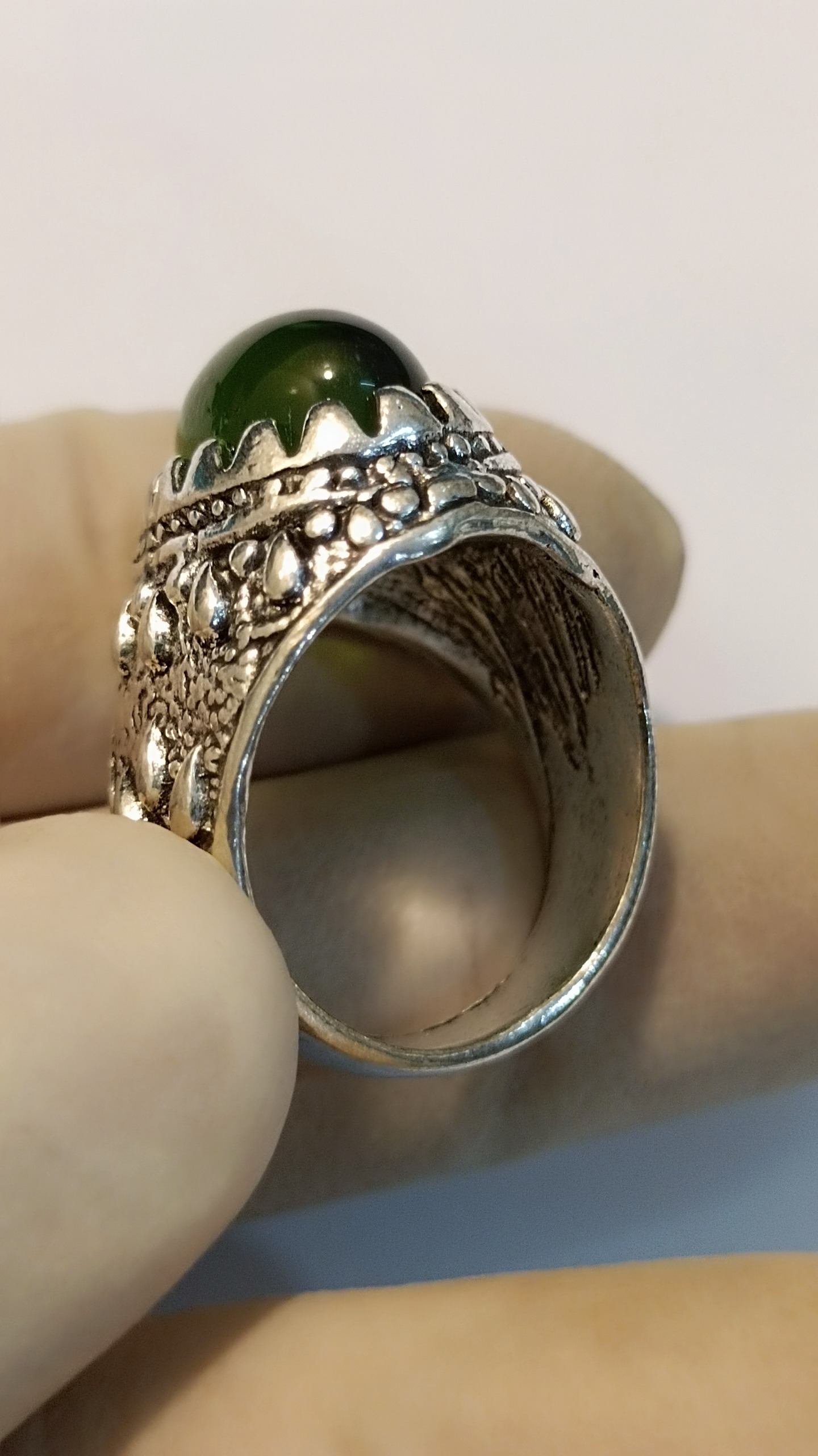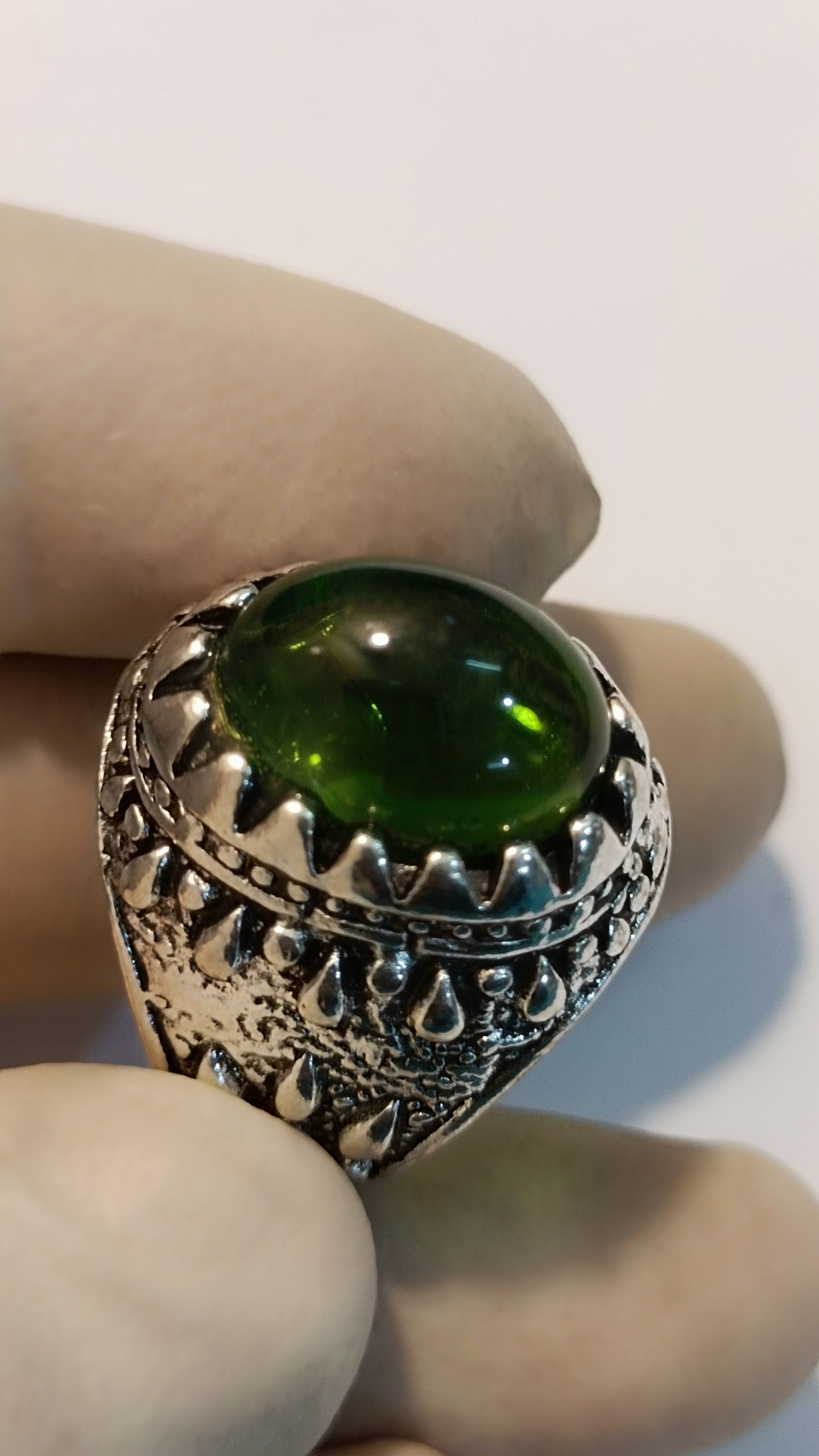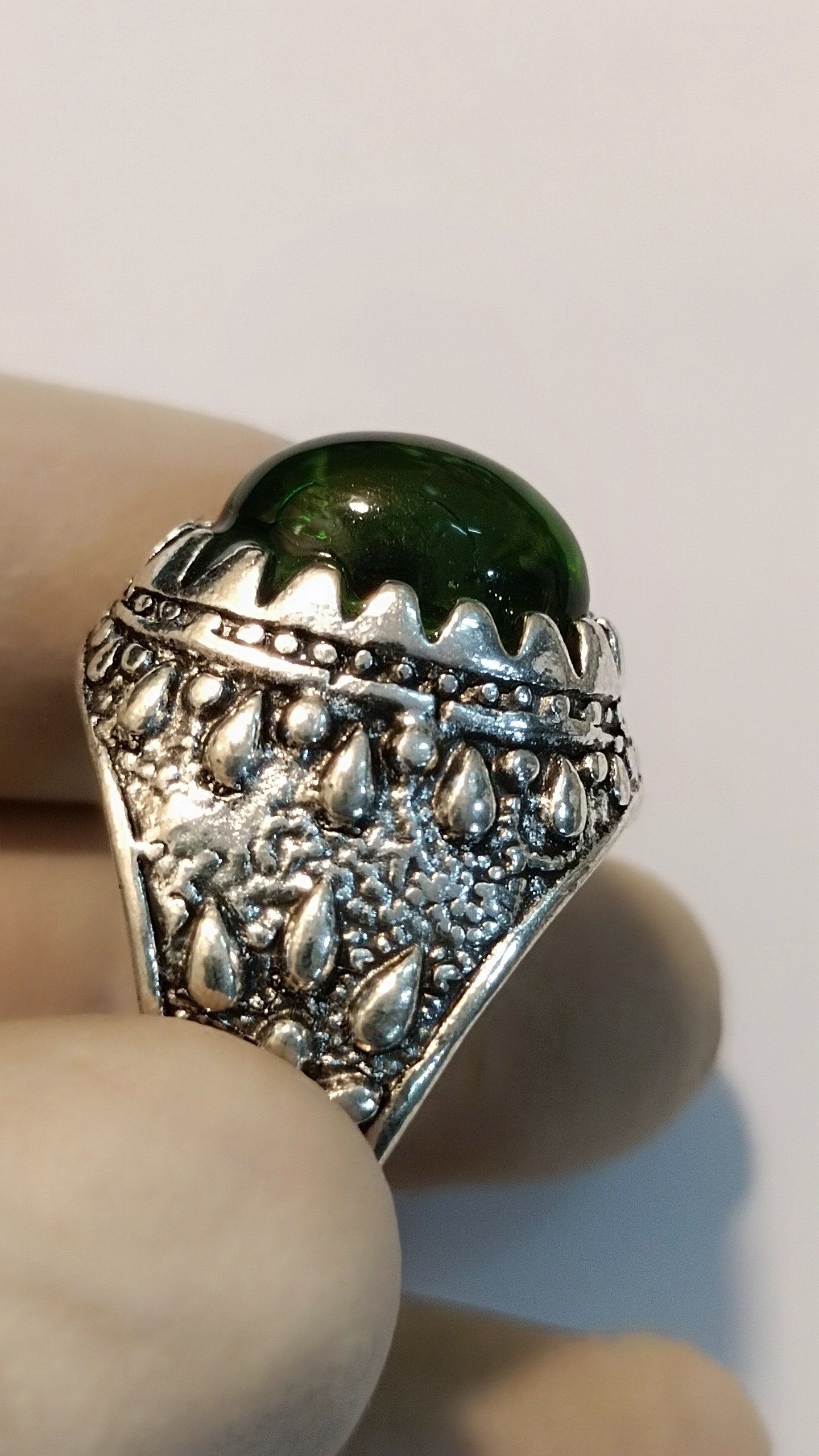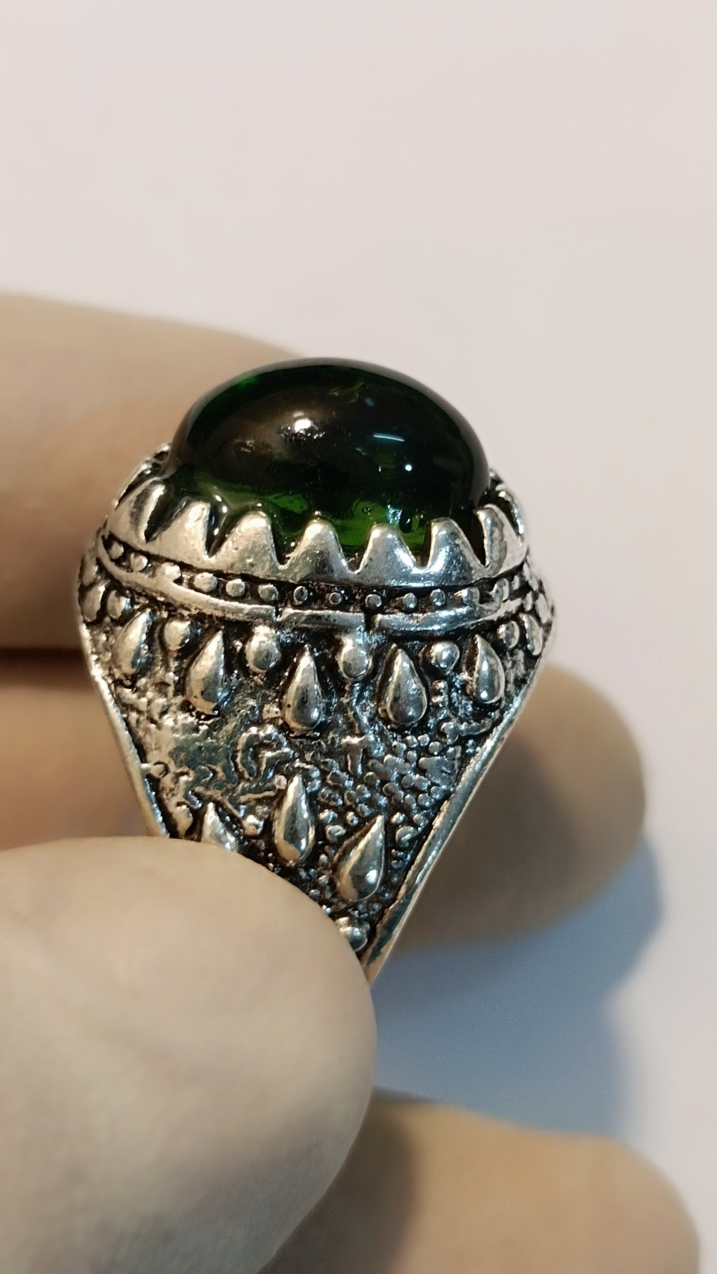 انگشتر نگین سبز رکاب نقره ای رنگ حراجی