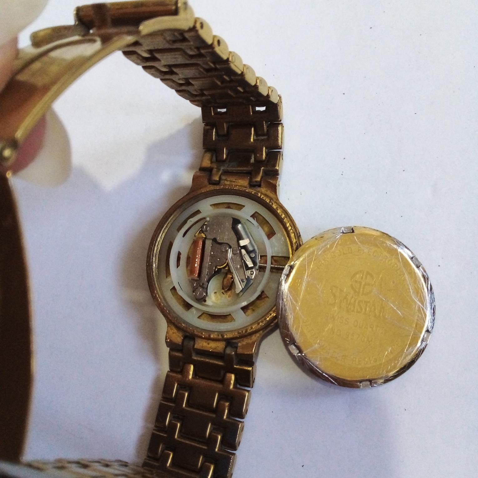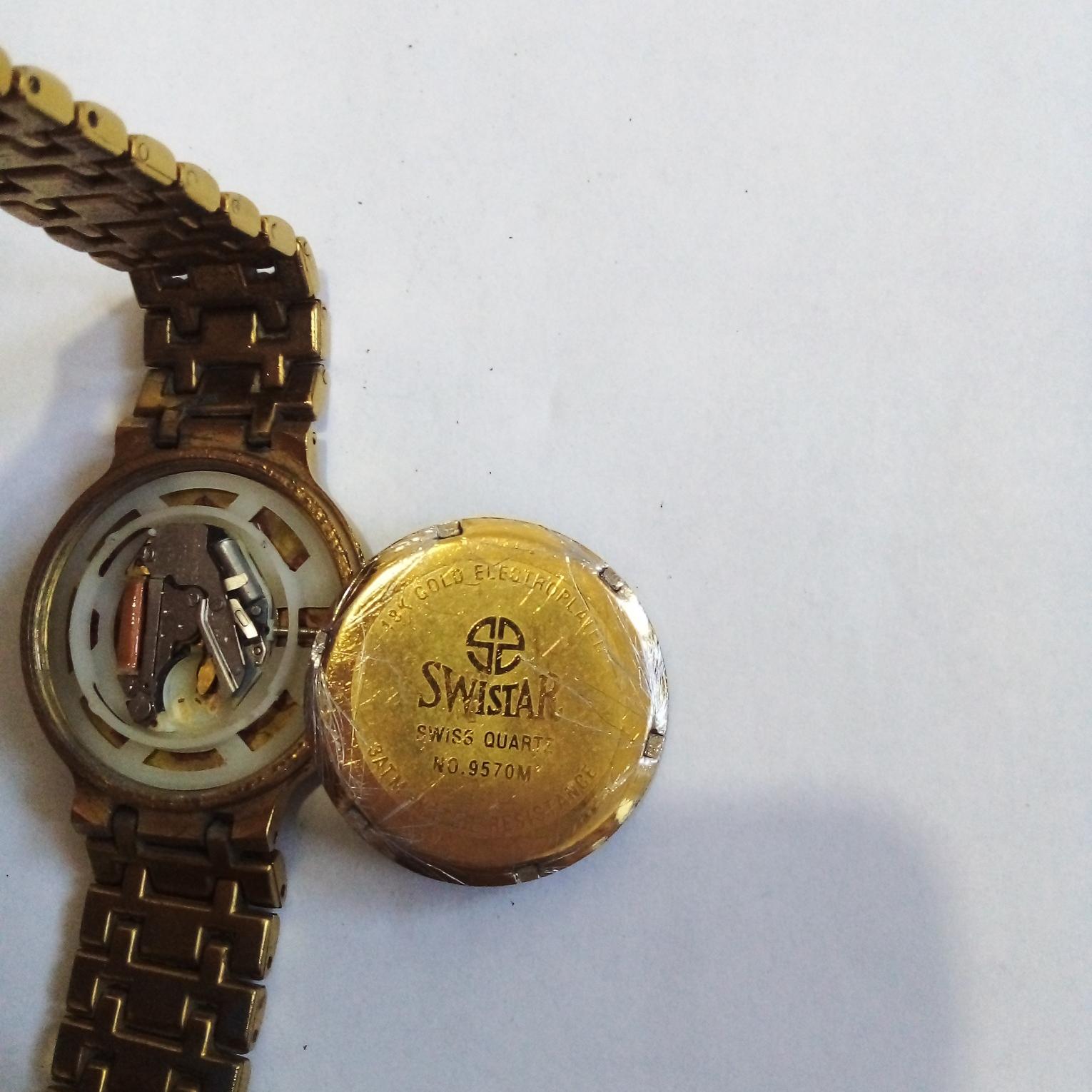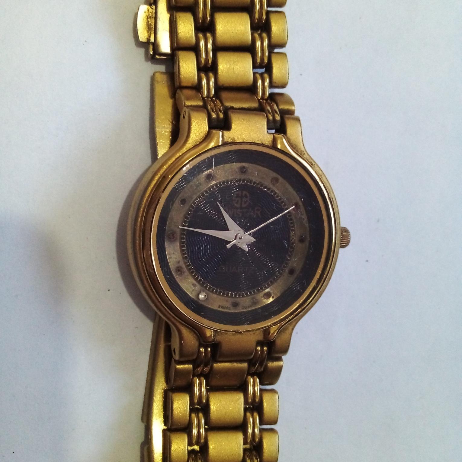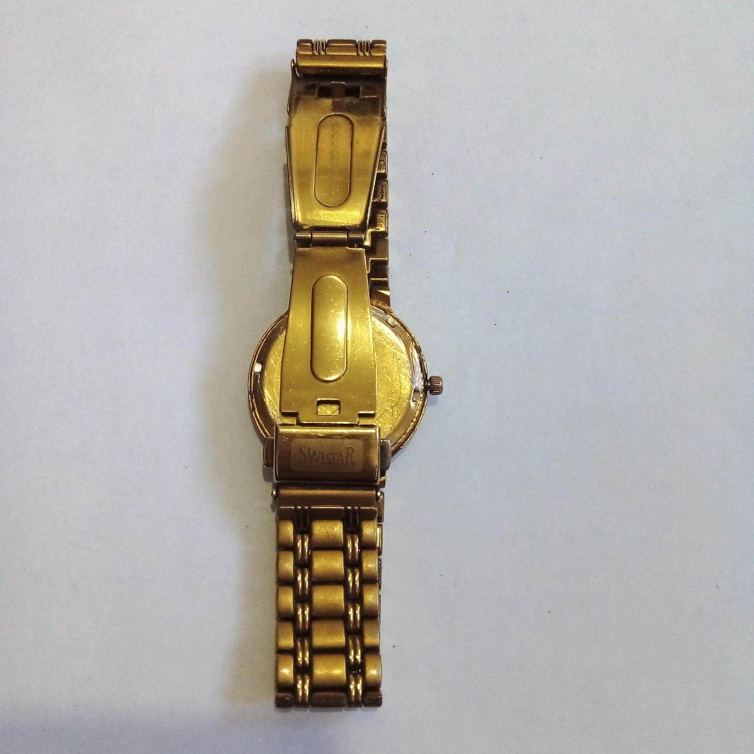 درود وروز بخیر خدمت عزیزان کاربر و سایت محترم ایسام . ساعت مچی زیبای مردانه سویستار با قاب بدنه کامل وسالم . بند وقفل بند کامل وسالم . بند زیبای طلایی رنگ وصفحه نمایش مشکی و طلایی . دقیقا طبق تصاویر . عزیزان خریدار قبل از اقدام به خرید لطفا وحتمن عکسها
