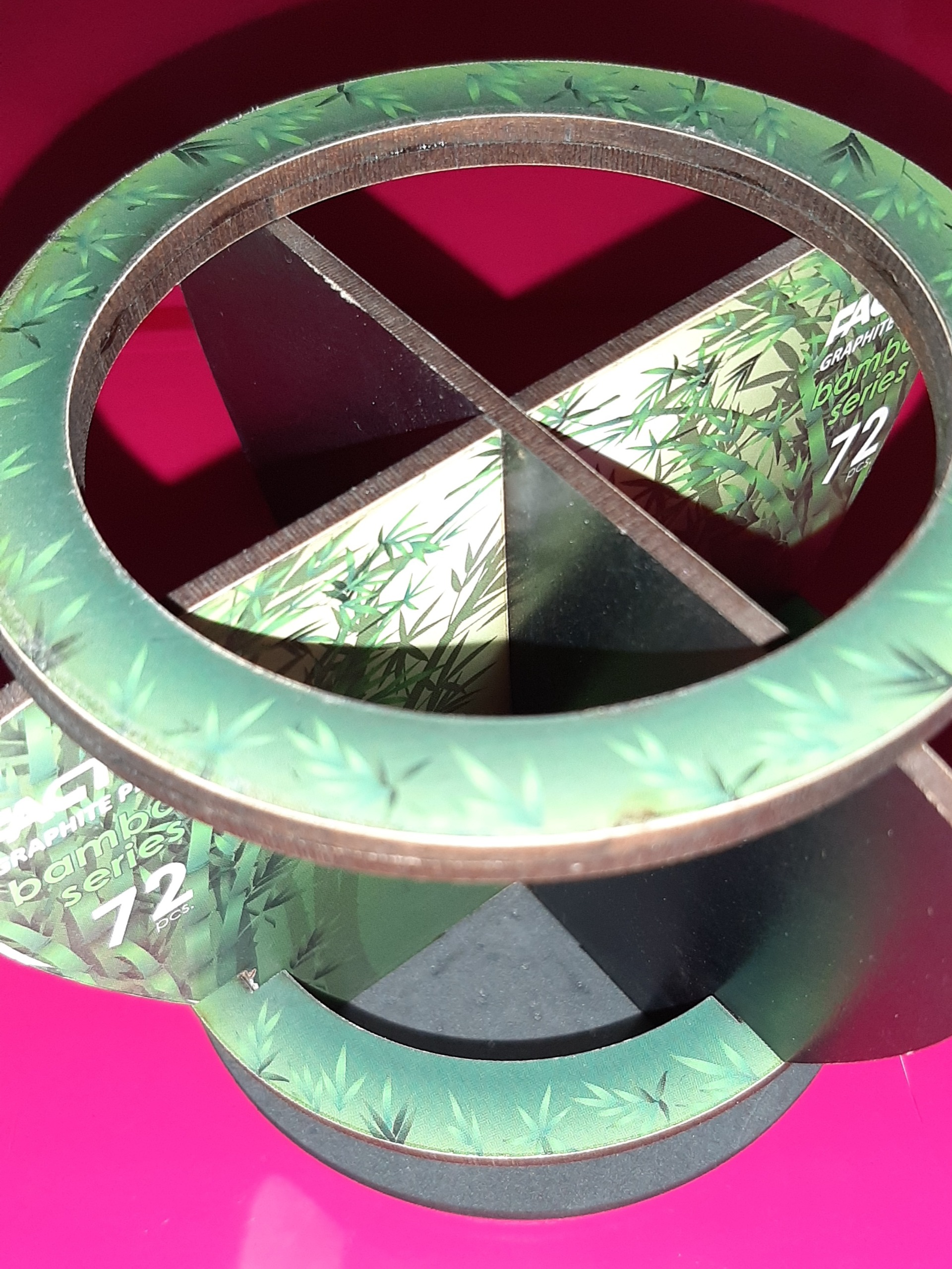 جنس این جامدادی چوبی بوده و دارای کفی پلاستیکی مخصوص جهت نوک مداد و خودکار می باشد.