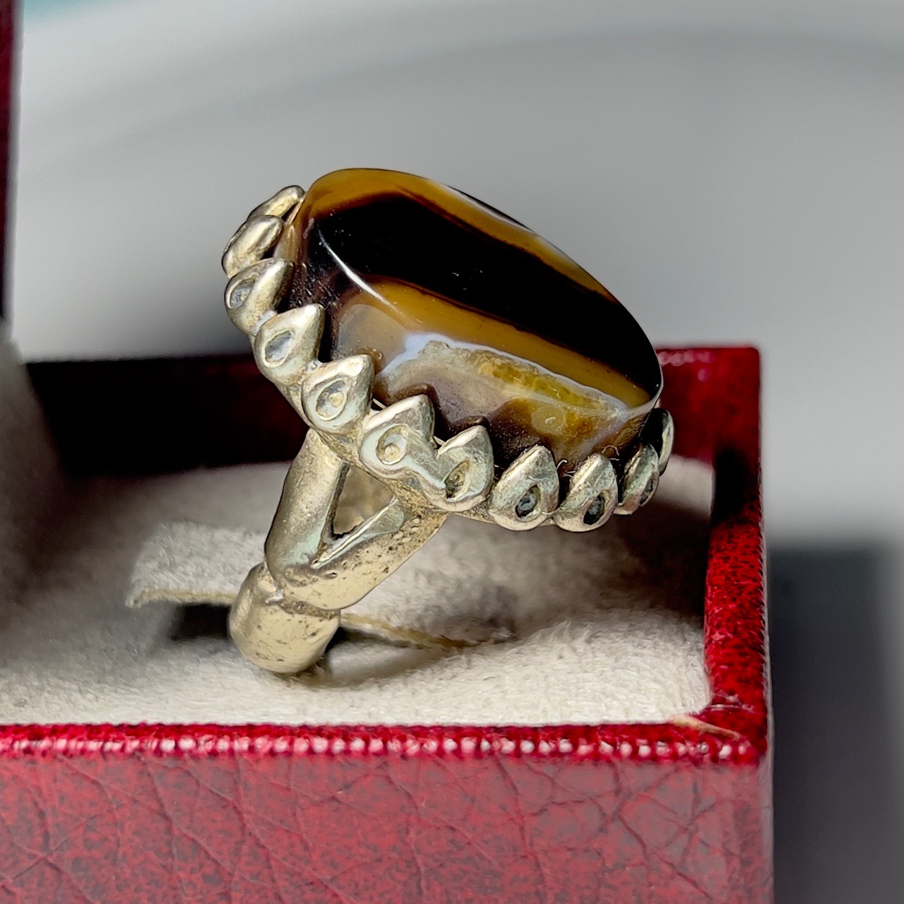 انگشتر خیره کننده نگین عقیق سلیمانی بینظیر