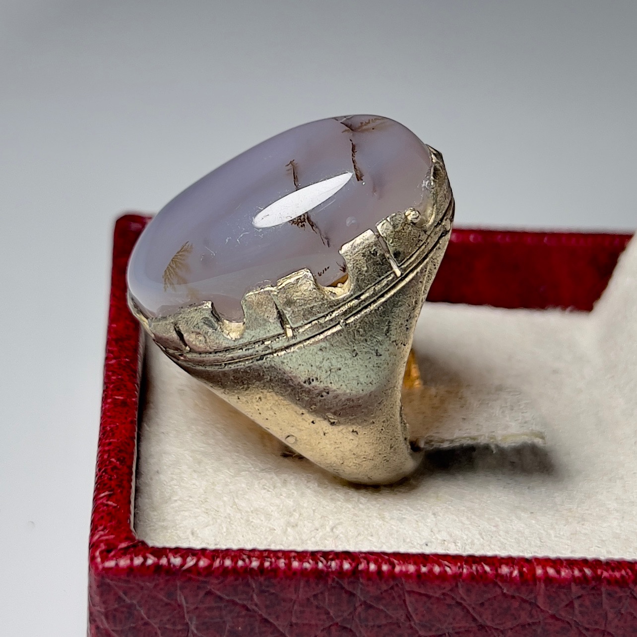 انگشتر غولپیکر آبدار نگین عقیق شجردار