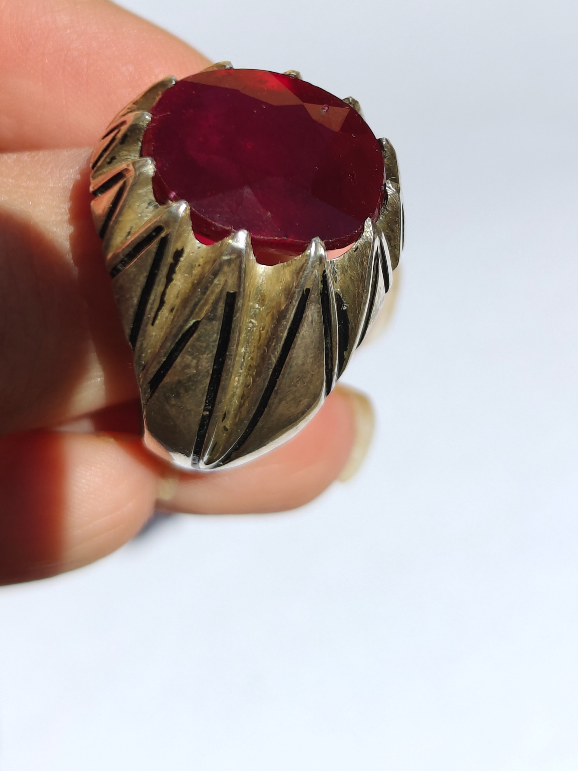 انگشتر نقره یاقوت سرخ مردانه مدل 08