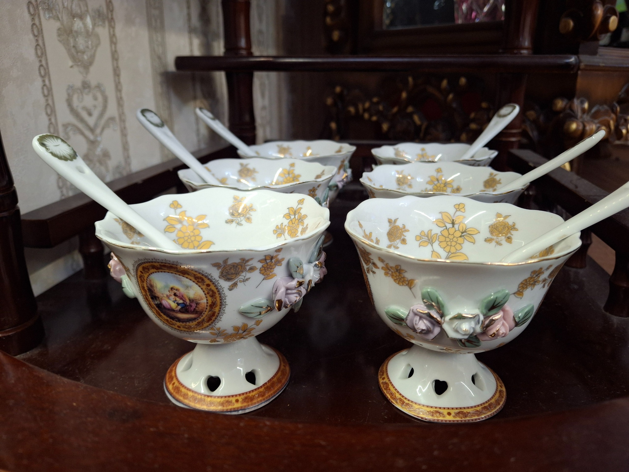 بستنی خوری گل برجسته 12 پارچه 6 نفره