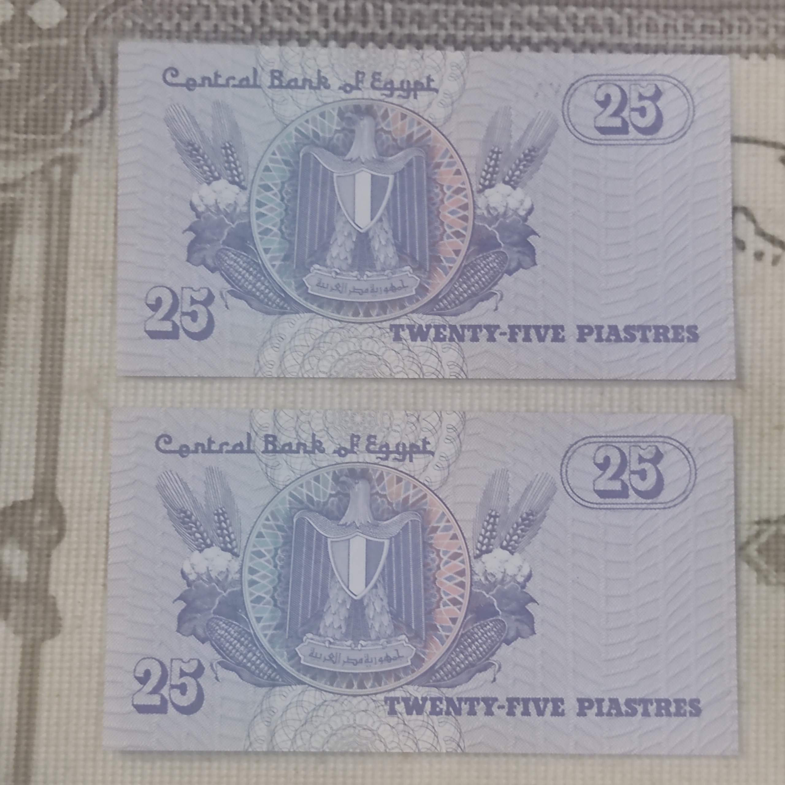 یک جفت اسکناس نو وبانکی 25 قرشا کشور مصر