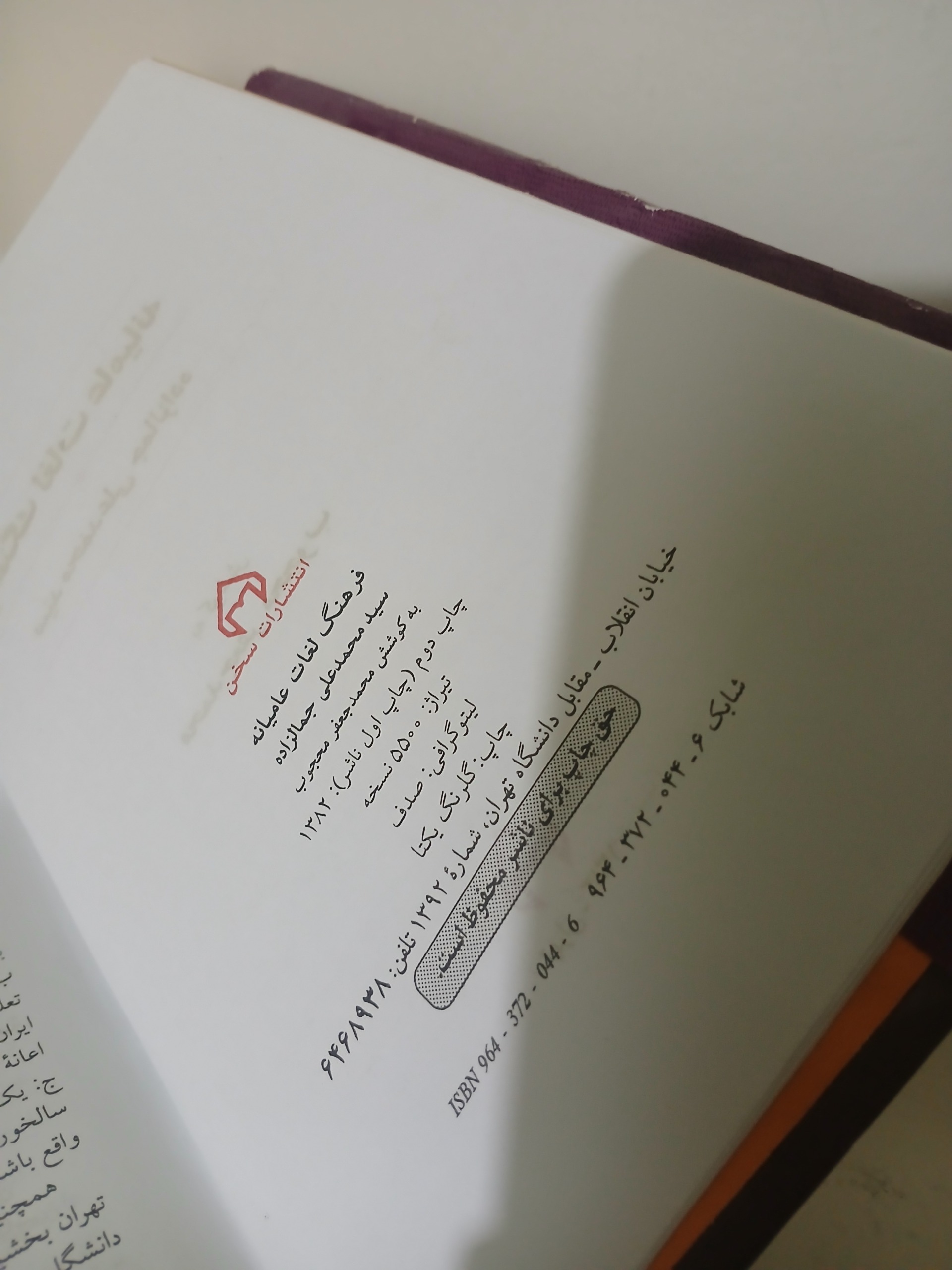 کتاب فرهنگ لغات عامیانه محمدعلی جمالزاده انتشارات سخن