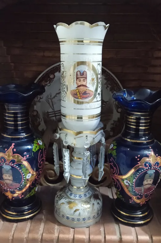 جفت لاله قدیمی ایرانی طلاکوب نقش مظفرالدین شاه