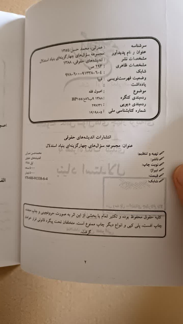 بنیاداستدلال درحقوق اسلامی (سوال چهارگزینه ای )