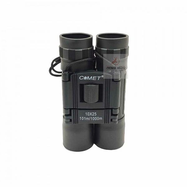 دوربین تک چشمی COMET مدل 25*10 دارای پوشش پلاستیکی محکم و ضد ضربه و ضد آب می باشد. دوربین دو چشمی COMET سیستم فوکوس دوگانه (مرکزی +عدسی کوچک) را دارد که ازین طریق امکان بزرگنمایی تصویر تا 25 برابر را دارد، با این مقدار بزرگنمایی میتوان هر چیزی را در فاصله 2000 متری با دوربین دید. همچنین دوربین در نورهای کم، زیاد، آب و هوای بارانی و گرد و غبار کار می کند . گستره قطر دهانه دوربین دو چشمی COMET 42 میلیمتر، قطر مردمک خروجی 55 میلیمتر و فاصله راحتی چشم 10 میلیمتر می باشد. دوربین دو چشمی COMET مدل 25*10 دارای بند آویز و کیف برزنتی کمری می باشد و به همراه آن نیز یک پارچه مخصوص برای تمیز کردن لنزها وجود دارد. از این دوربین میتوان در مسابقات ورزشی ،کوهنوردی ،شکار و دیدن مناظر طبیعی استفاده کرد.
