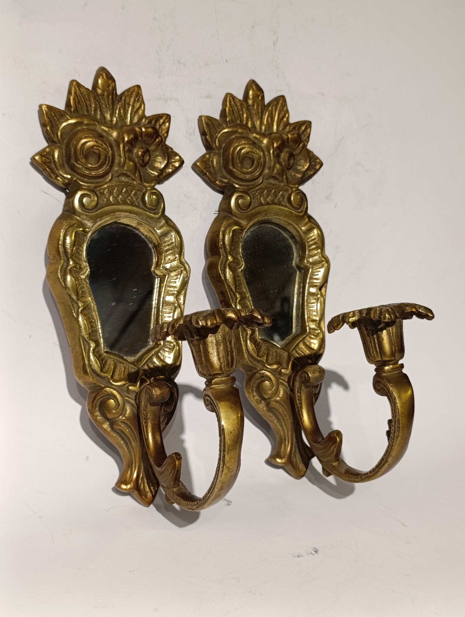 جفت شمعدان برنز دیواری اروپایی سنگین وزن