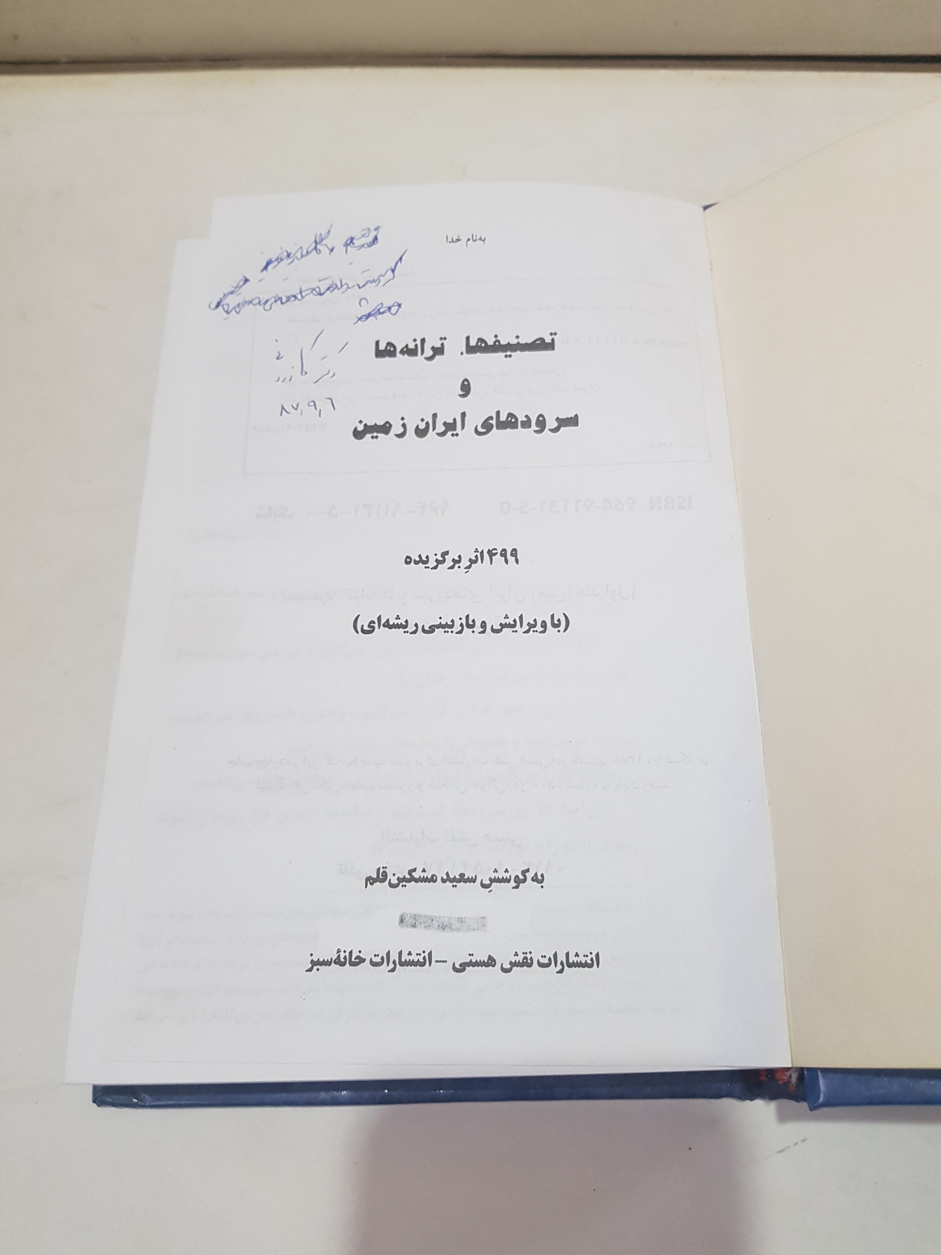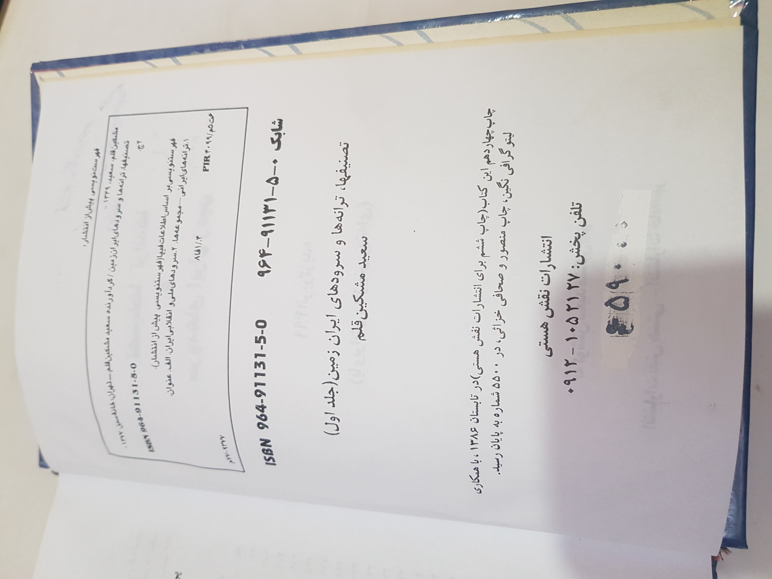 کتاب تصنیفها ترانه هاوسرودهای ایران زمین جلداول