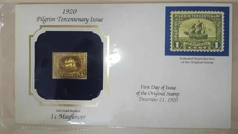 دولت آمریکا برای ارج نهادن به برخی از تمبرهای خاص ،منجمله تاریخهای خاص و شخصیتهای تاریخی، مجوز ضرب تمبر زرین خود را به صورت محدود در گذشته بر روی طلا صادر نموده و اینگونه تمبرها بر روی ورق نرم ونازک طلا ضرب شده اند و اینگونه پاکتها در اختیار مجموعه داران خاص در آمریکاست و نایاب و کمیاب و ارزشمند میباشد. پاکت مزبور یکی از همانهاست که زیبنده آلبوم فاخر و گرانبهای شماست.