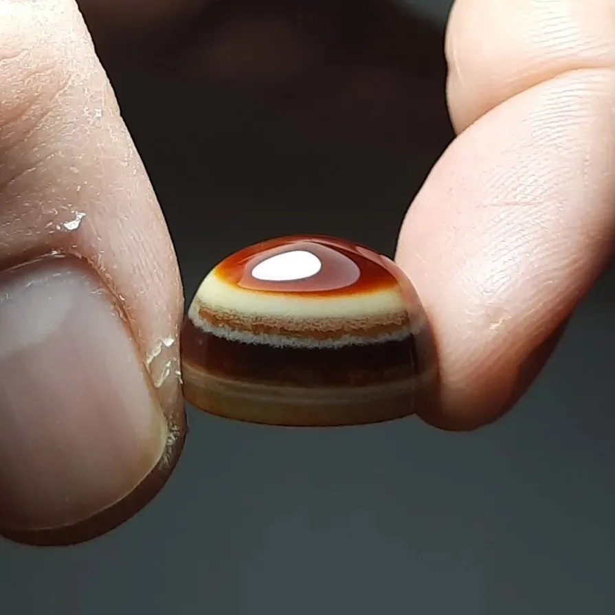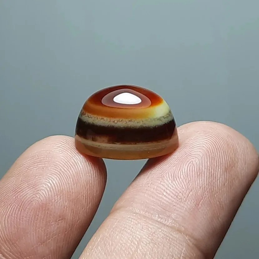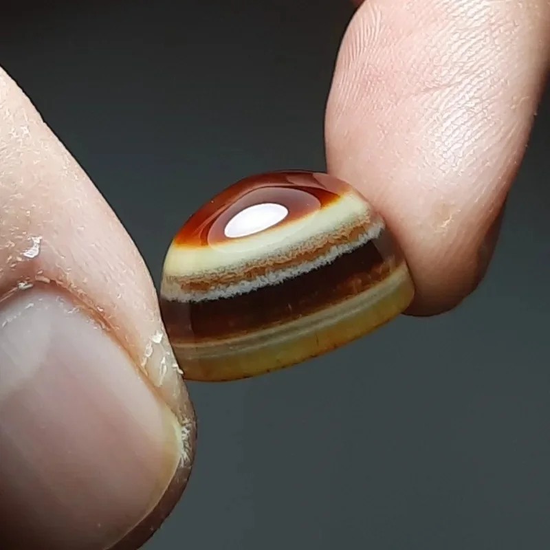 عقیق چند پوست منظم و میزان اصل معدنی ، سراسر طوق های رنگی موازی ( پرگاری ) ، تراش دقیق و منظم ، چشمگیر و ارزشمند و خاص